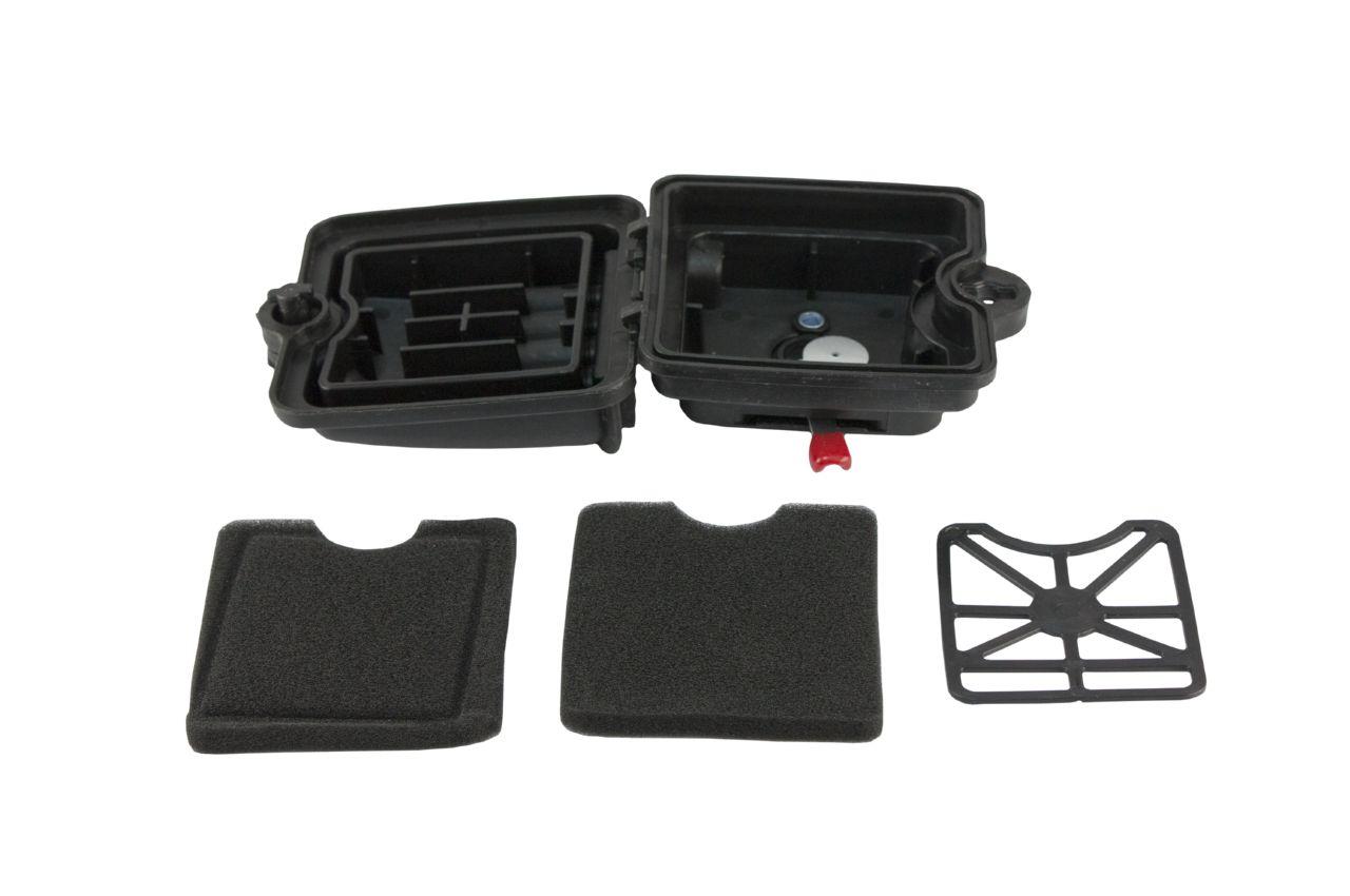 Корпус повітряного фільтра, разом з елементом, що фільтрує створює надійний захист поршневої групи. Очищаючи кисень, виробляє фільтрацію повітря, що подається в циліндр бензокоси. Матеріал - пластик.
