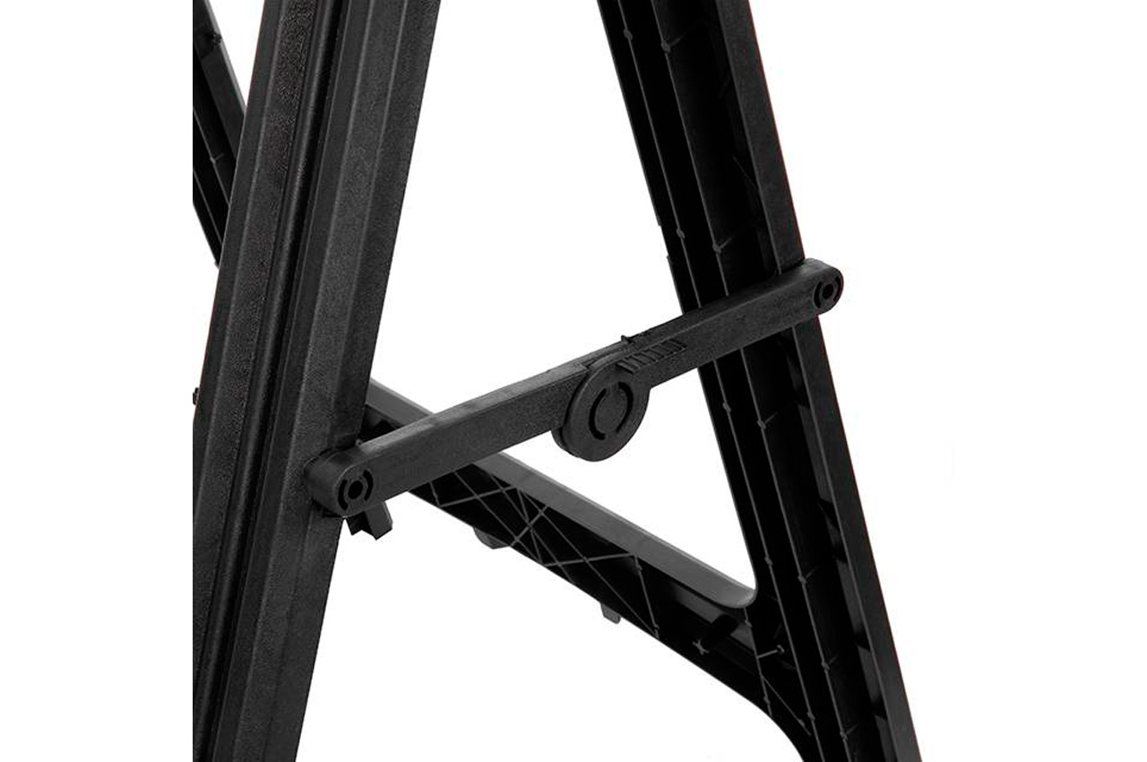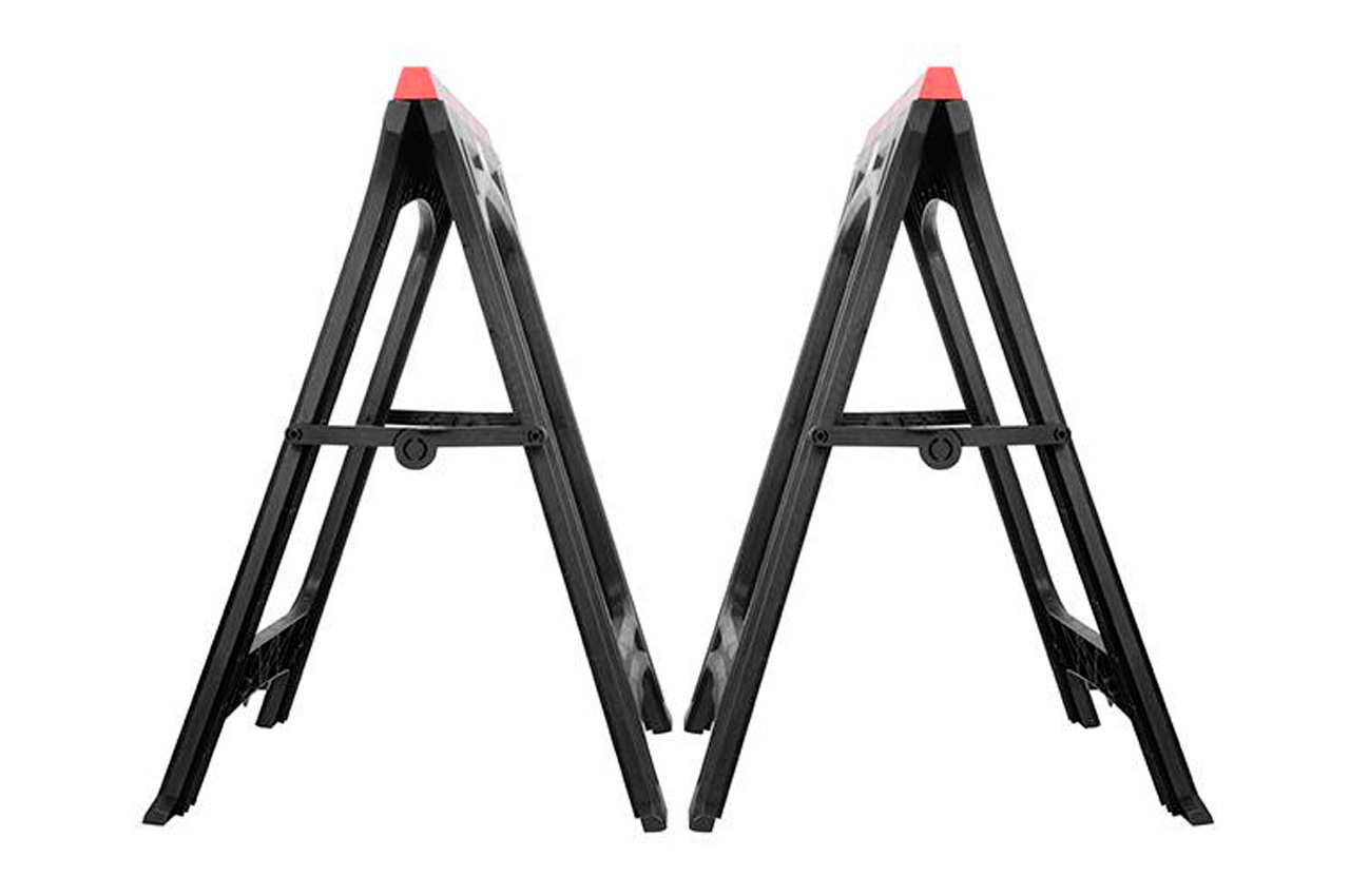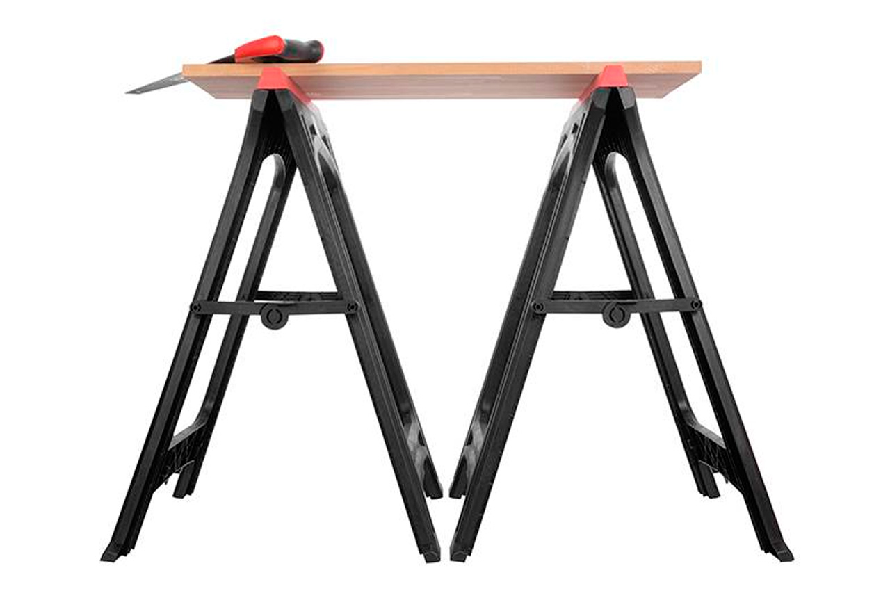 Складані козли призначені для ремонтних, будівельних робіт, а також стануть у пригоді для домашнього використання. Чотири широкі опорні ніжки стійко стоять на підлозі та дозволяють встановити будь-яку опорну площину на них для виконання робіт на висоті, 78 см від підлоги. Завдяки двом відкидним упорам з боків, поверхня, що встановлюється зверху, надійно фіксується і не зісковзує з козел. Легка та, в той же час, міцна конструкція з пластику дозволяє без особливих зусиль транспортувати козли в будь-яке місце. Вони компактно складаються та не займають багато простору під час зберігання.