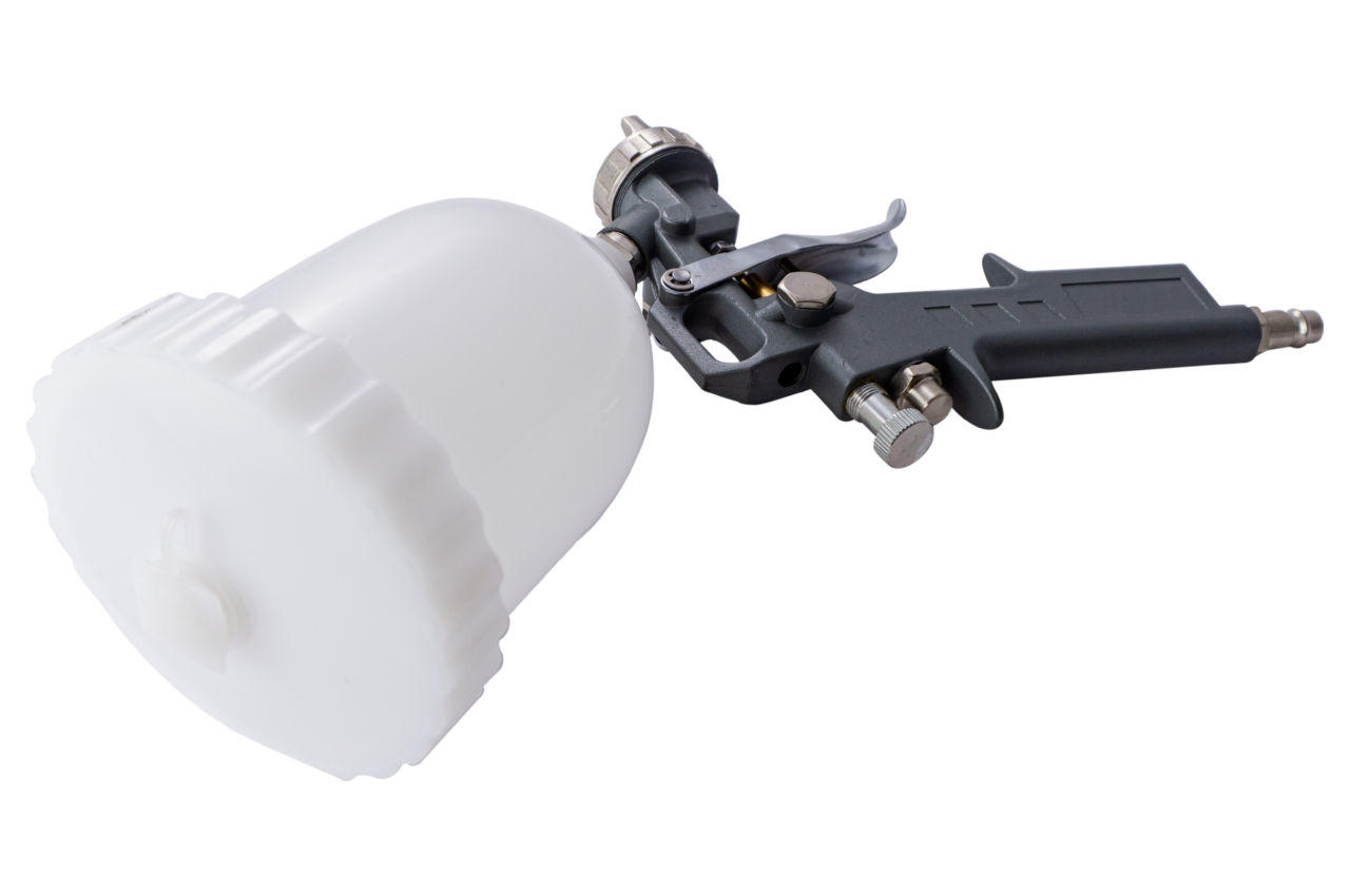 Краскопульт стане в нагоді при роботі з лакофарбовими матеріалами різних видів. Об'єм бака 600 мл Діаметр форсунки 1.4 мм Пневматичне з'єднання 1/4" Споживаний об'єм повітря 80-220 л/хв Робочий тиск 3.5-5 Бар Система розпилення HP