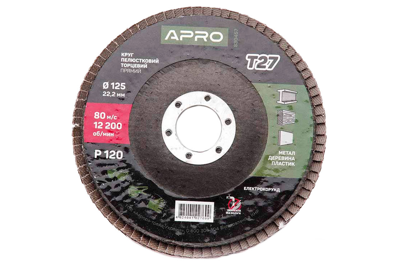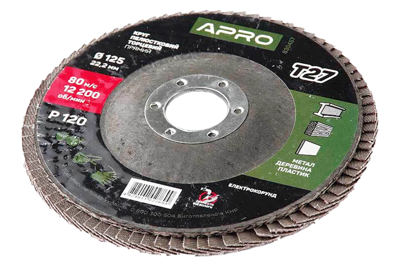 Круг пелюстковий торцевої Apro - 125 мм x Р120 прямий