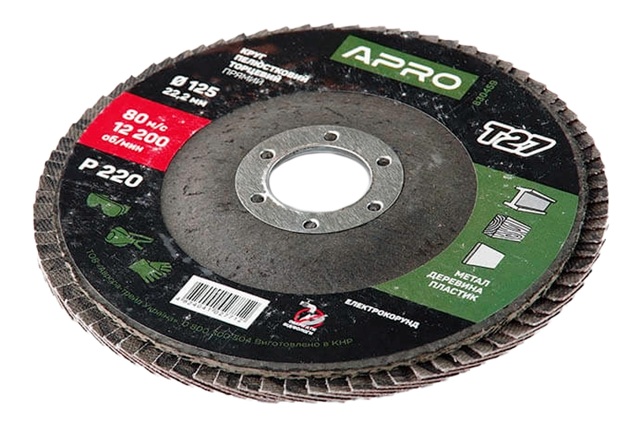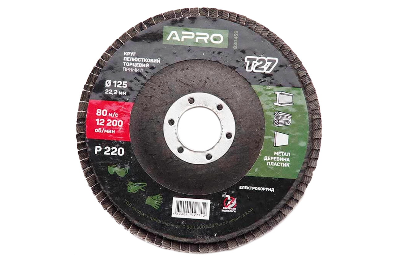 Круг пелюстковий торцевої Apro - 125 мм x Р220 прямий