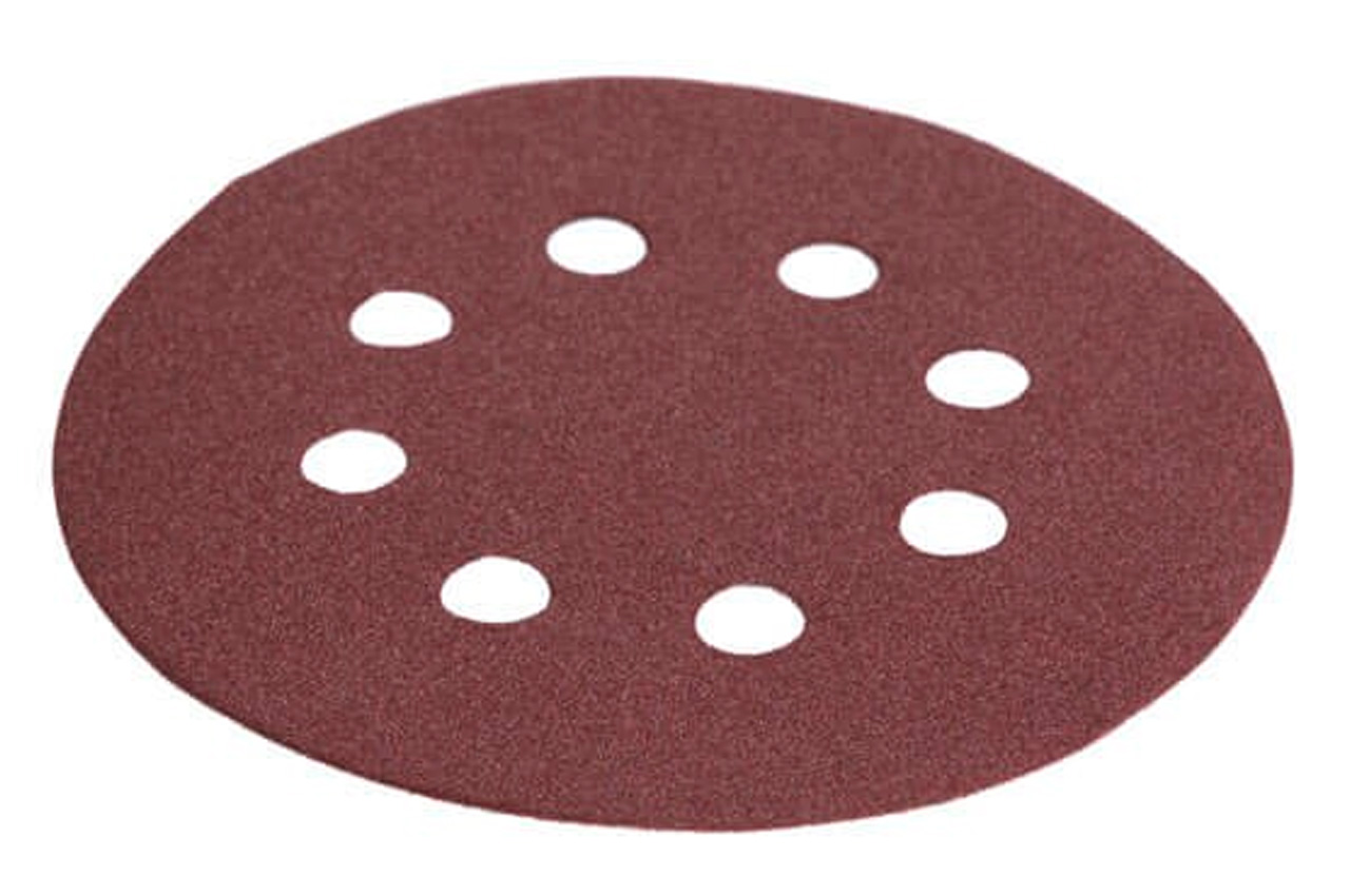 Коло наждачне самоклеючий з отворами застосовується для робіт з шліфувальними машинами, зокрема з ексцентриковими шліфувальними машинками. Використовується для зачистки та фінішної обробки різних поверхонь: дерева, металу, каменю, пластмаси, скла та ін. Підходить також для обробки фарби, лаку, шпаклівки, пластику. Круги із зернистістю від 150 до 600 для фінального шліфування та полірування під фарбування. Матеріали, що використовуються: основа - папір класу С, щільність 140 г/кв.м².; шліфувальне зерно – оксид алюмінію; з'єднувач – фенольна смола; матеріал зчеплення – велюр; напіввідкрите насипання.