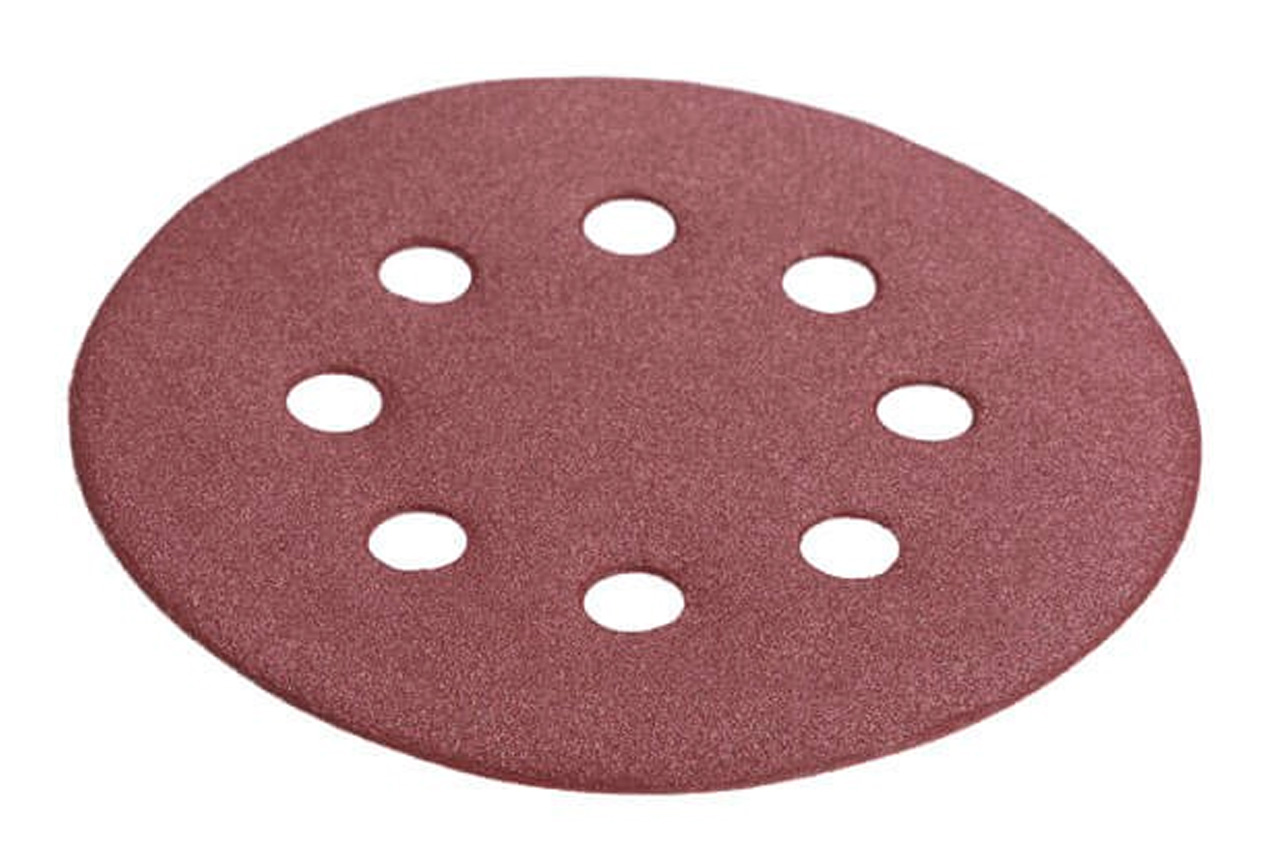 Коло наждачне самоклеючий з отворами застосовується для робіт з шліфувальними машинами, зокрема з ексцентриковими шліфувальними машинками. Використовується для зачистки та фінішної обробки різних поверхонь: дерева, металу, каменю, пластмаси, скла та ін. Підходить також для обробки фарби, лаку, шпаклівки, пластику. Круги із зернистістю від 150 до 600 для фінального шліфування та полірування під фарбування. Матеріали, що використовуються: основа - папір класу С, щільність 140 г/кв.м².; шліфувальне зерно – оксид алюмінію; з'єднувач – фенольна смола; матеріал зчеплення – велюр; напіввідкрите насипання.