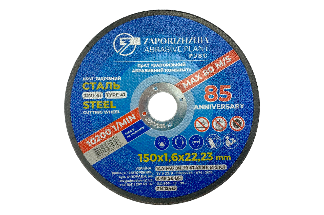 Круг відрізний по металу ЗАК 150 х 1,6 х 22,23мм Україна