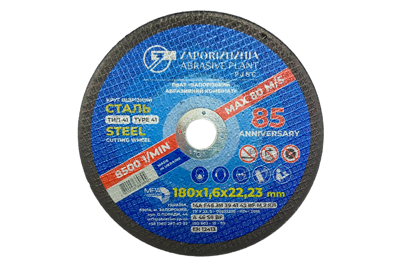 Круг відрізний по металу ЗАК 180 х 1,6 х 22,23мм Україна