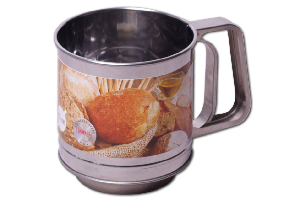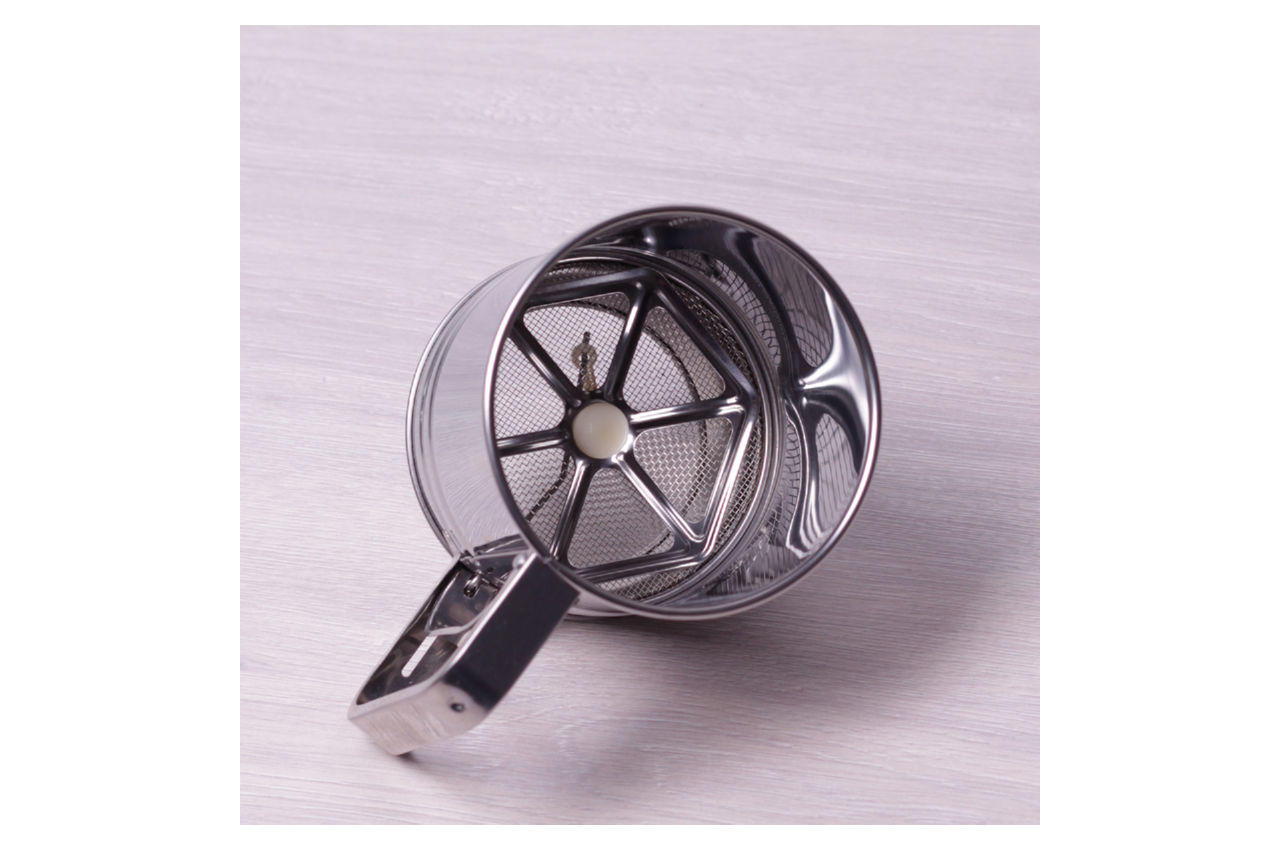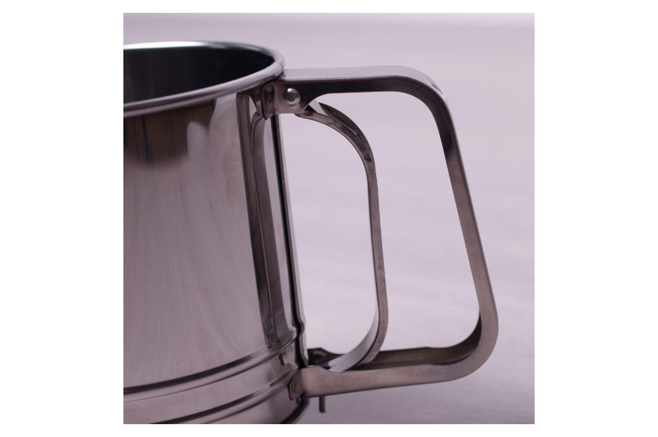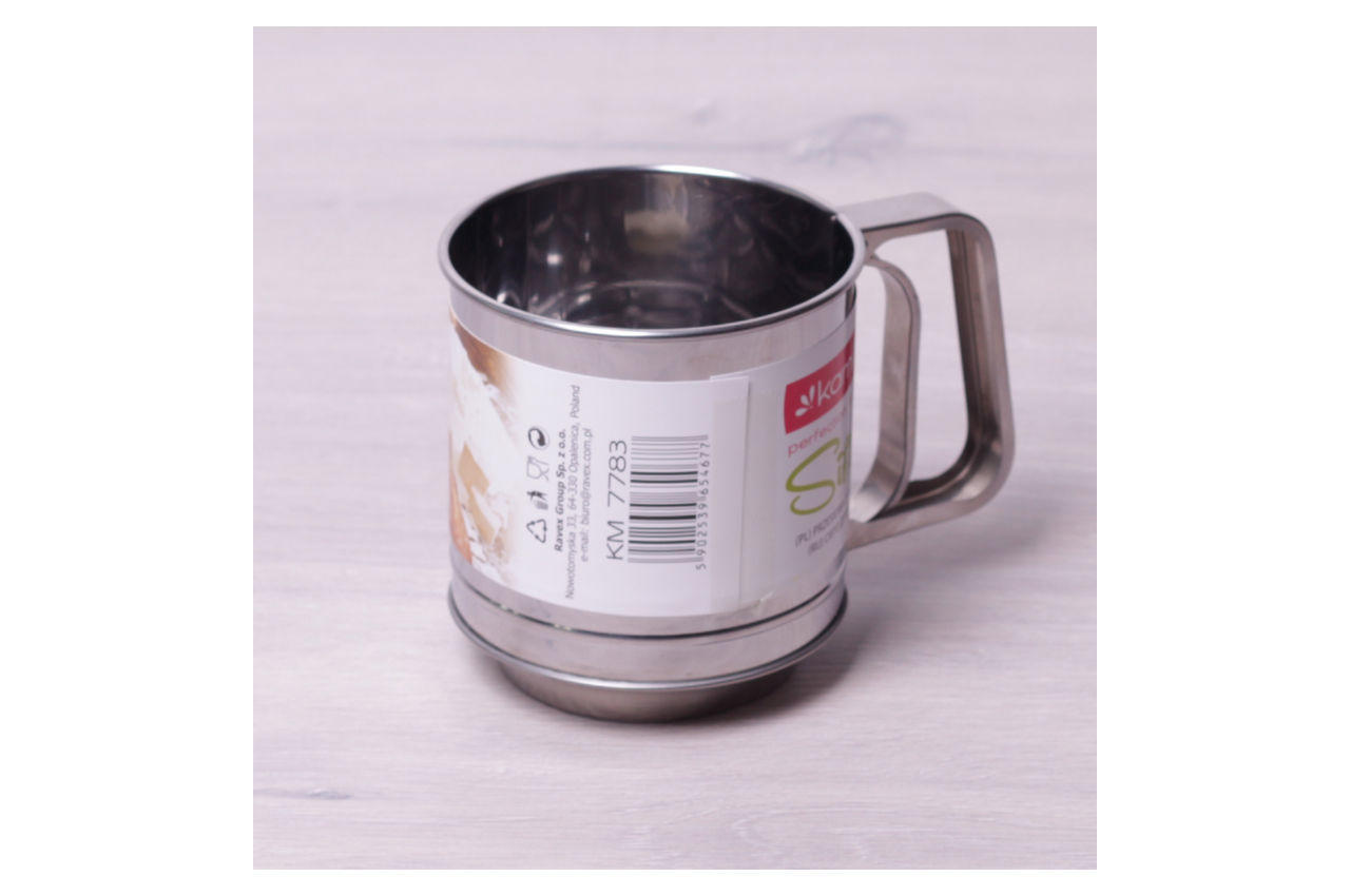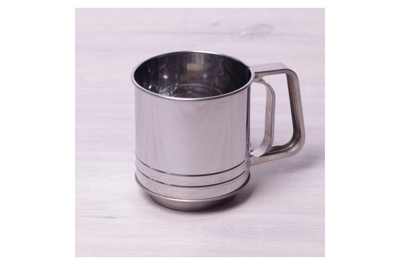 Кружка-сито Kamille – відмінне пристосування для просіювання борошна та інших сипких продуктів. Кружка-сито виконана з високоякісної нержавіючої сталі і оснащена одинарним ситовим дном і спеціальною ручкою, всередині якої знаходиться пружинка, завдяки чому Ви зможете просіяти потрібний Вам продукт з допомогою легких натиснень.