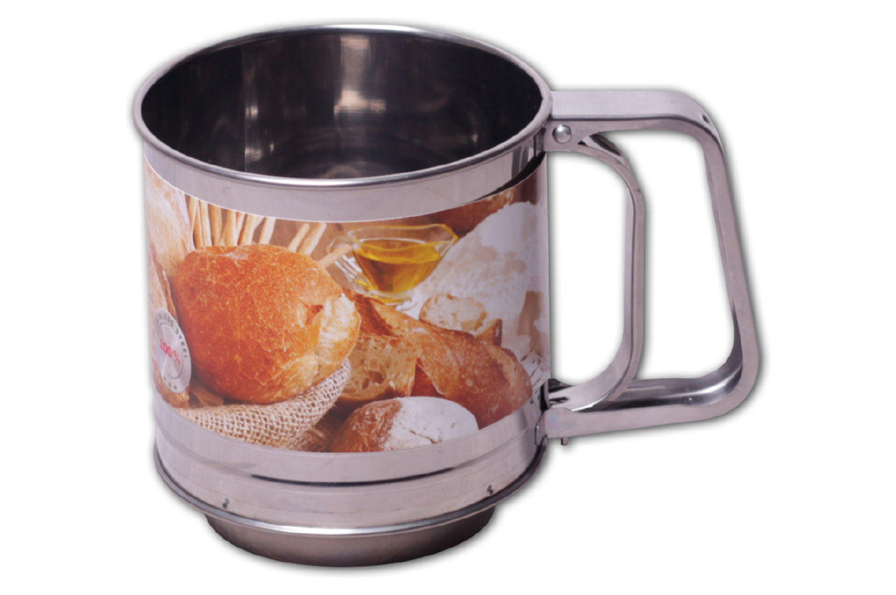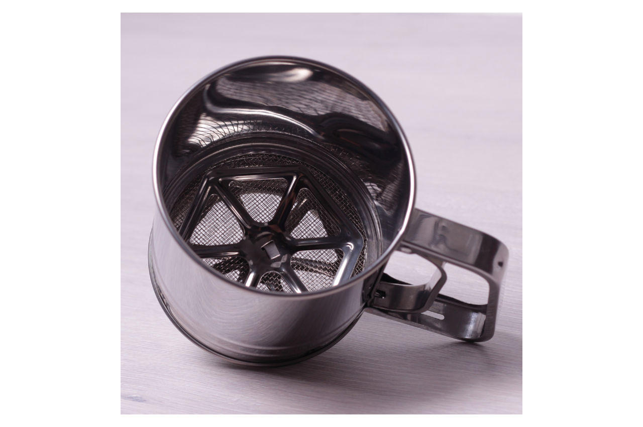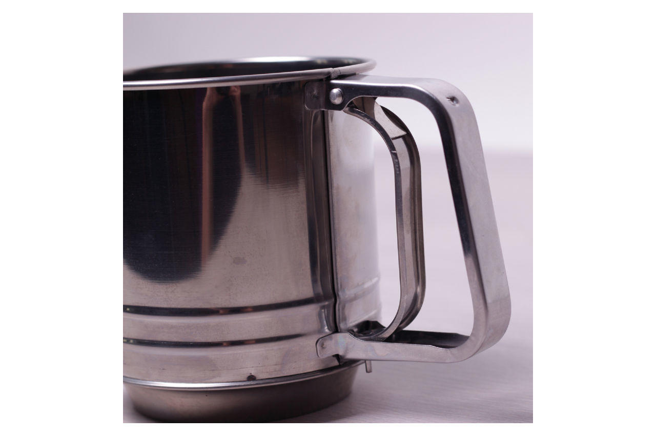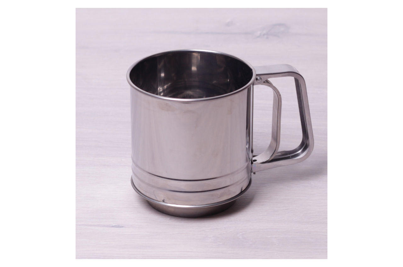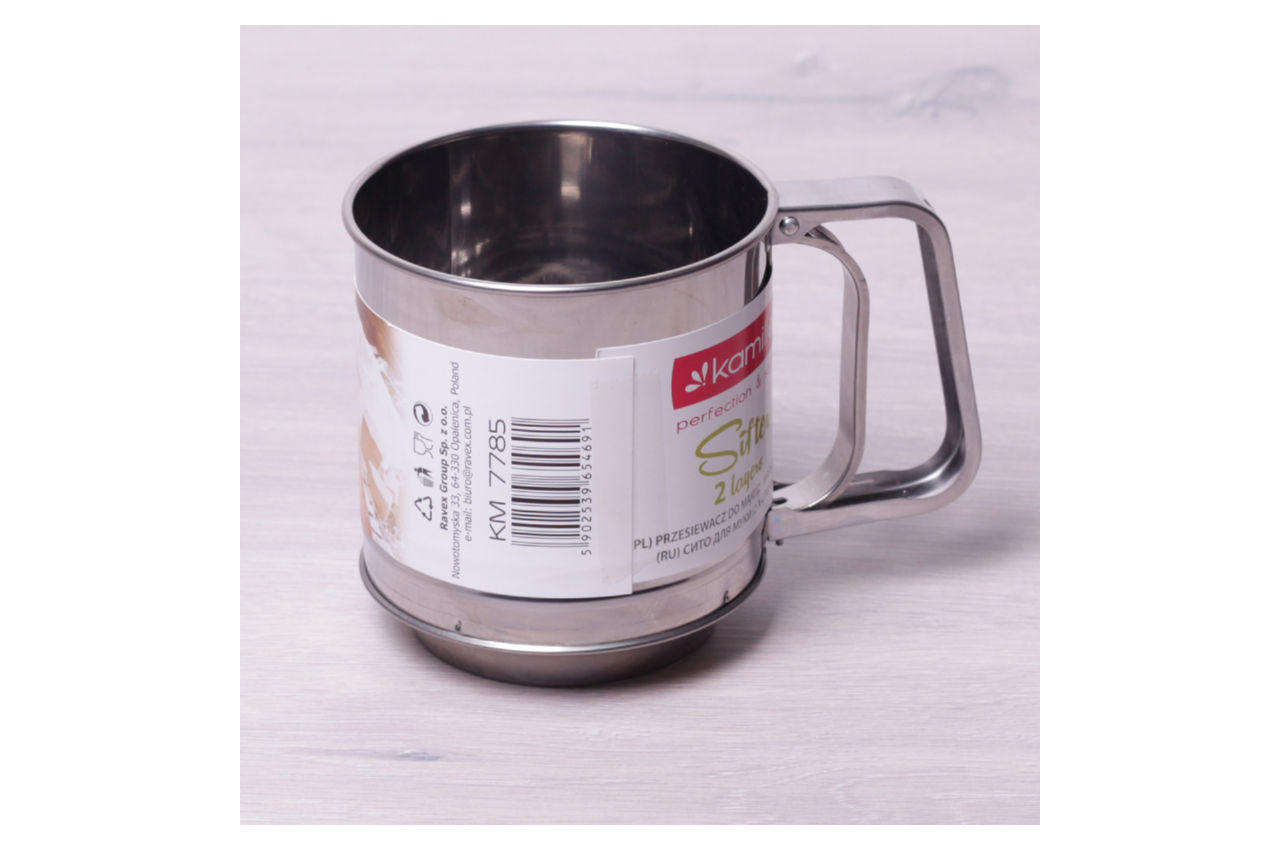 Кружка-сито Kamille – відмінний пристрій для просіювання борошна та інших сипучих продуктів. Кружка-сито виконана з високоякісної нержавіючої сталі та оснащена подвійним ситовим дном для більш ефективного просіювання та спеціальною ручкою, всередині якої знаходиться пружинка, завдяки чому Ви зможете просівати потрібний Вам продукт за допомогою легких натискань.