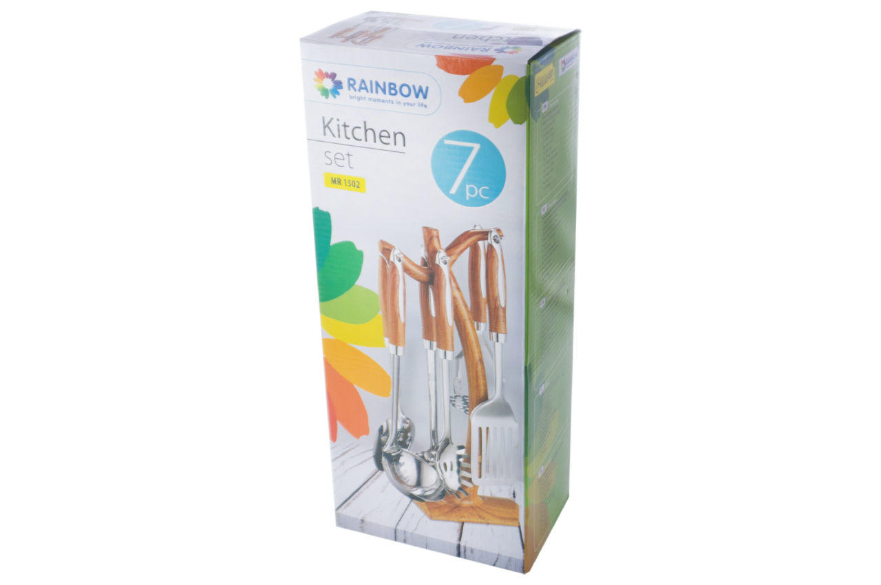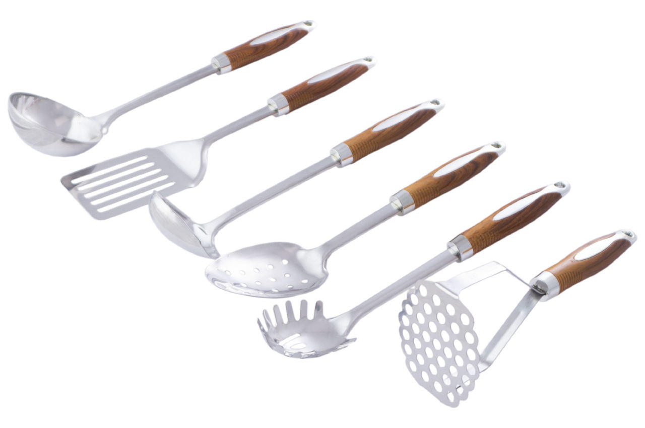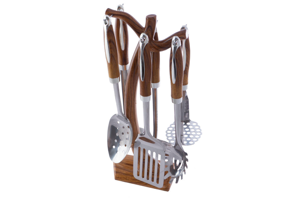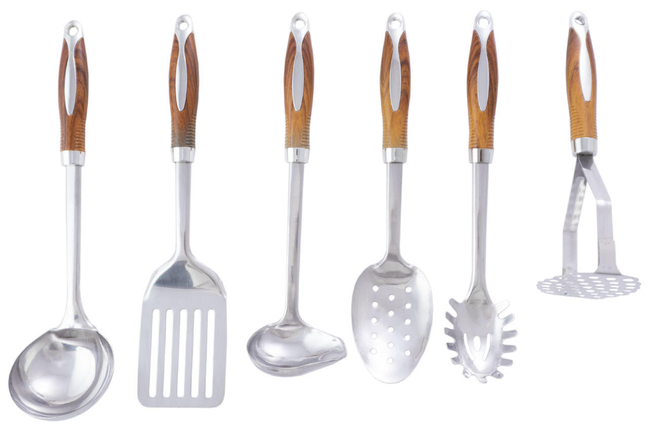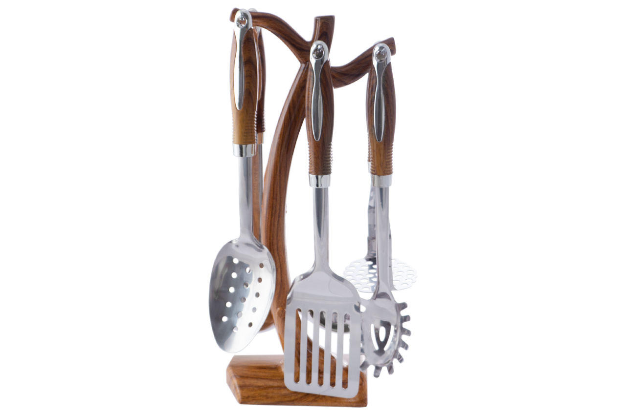 Кухонне приладдя Maestro MR-1502 виконане з високоякісної нержавіючої сталі. Маючи у себе в арсеналі таке кухонне приладдя, Ви більше не будете турбуватися, що у Вас немає необхідного приладу, а приготування страв приноситиме лише задоволення. Набір складається з 7 предметів: - соусник - шумівка - ложка для спагетті - лопатка - Картоплям'ялка - ополоник - підставка