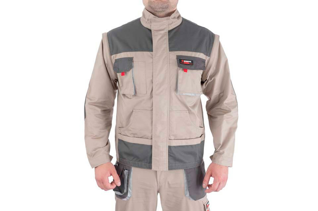Куртка бежевого кольору проводиться з 100% натуральної бавовни з високим рівнем гігієнічності та міцності (щільність 180 г / м²). Виріб відмінно пропускає повітря і не створює дискомфорту при інтенсивній роботі, при цьому захищає від всіляких механічних впливів навколишнього середовища. При необхідності, в жаркій середовищі може трансформуватися в робочий жилет, рукави відстібаються. 7 функціональних кишень для зберігання інструменту і особистих речей Блискавка з вітрозахисним клапаном Комфортний, легкий матеріал виготовлення Накладки з щільної тканини на ліктях для захисту від стирання Посилені шви підвищують міцність виробу Манжет на липучці Трансформується в робочий жилет - рукава на змійці Прямий крій куртки не обмежує рухів