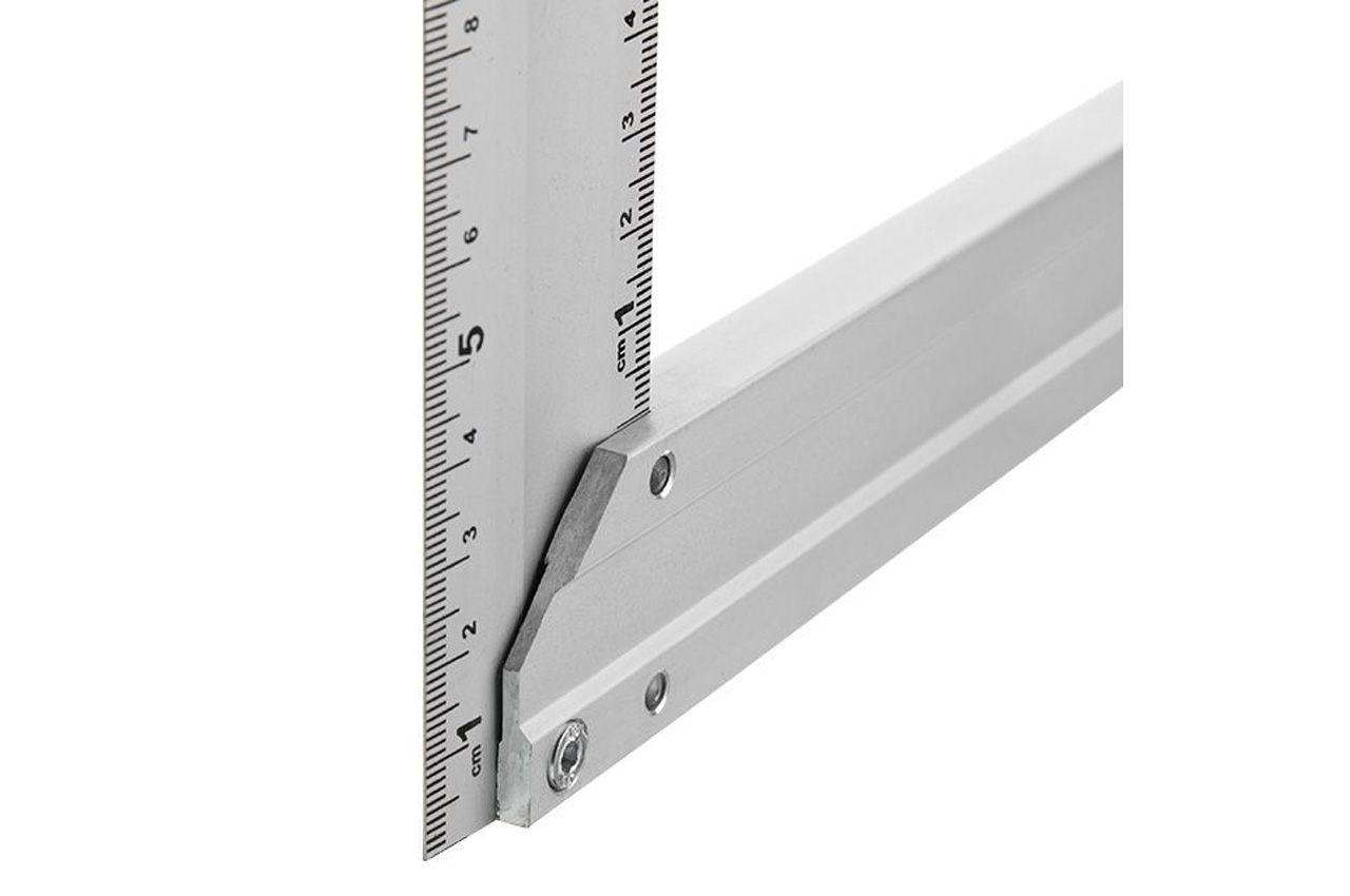Косинець будівельний алюмінієвий MT-2062 необхідний для розмітки і визначення прямих кутів. Двостороння плече інструменту з нанесенням розмітки по обидва боки дозволить максимально просто і точно зробити позначки навіть в самих важкодоступних місцях. Алюмінієвий сплав в якості матеріалу виготовлення робить будівельний косинець MT-2062 стійким до корозії, вологи та інших умов навколишнього середовища. Додаткові ребра жорсткості збережуть рівність вимірювальної поверхні. Плече закріплено в колодці двома заклепками і додатковим гвинтом, що запобігає його розхитування і забезпечує максимальний термін служби інструменту. Плече: 175х34х12 мм; Колодка: 307х40х3 мм
