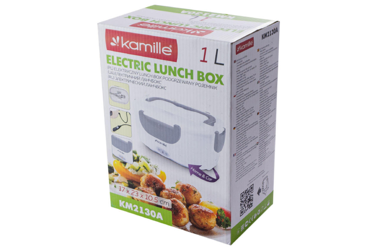 Електричний ланч бокс Kamille володіє високою якістю, надійністю, компактними розмірами і барвистим естетичним дизайном. Ланч бокс чудово підходить для транспортування домашніх обідів і буде просто незамінним для офісних працівників або водіїв. Такий ланч бокс упакований в яскраву дизайнерську коробку і може стати прекрасним подарунком для Ваших близьких і друзів. Електричний ланчбокс 40Вт (50Гц) з підігрівом від мережі 220V і автомобільним 12V.