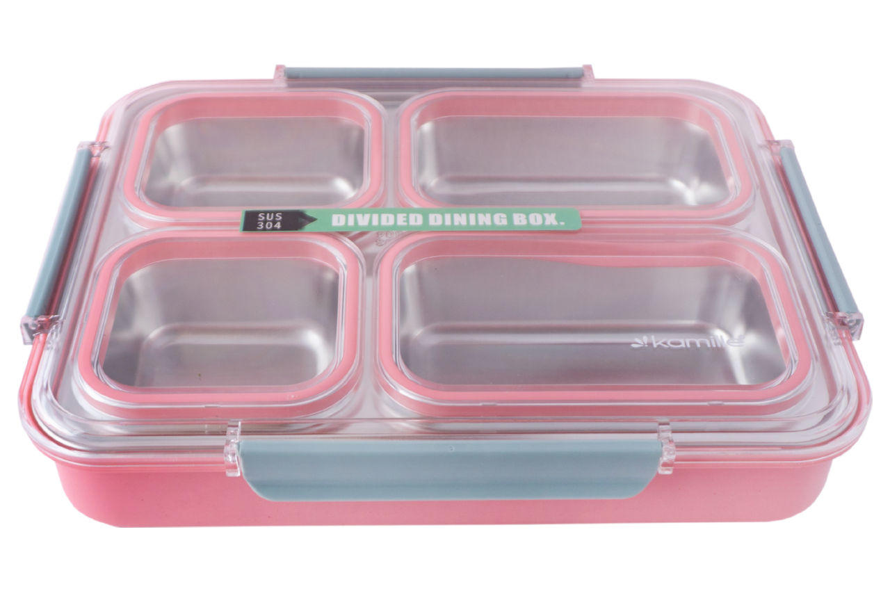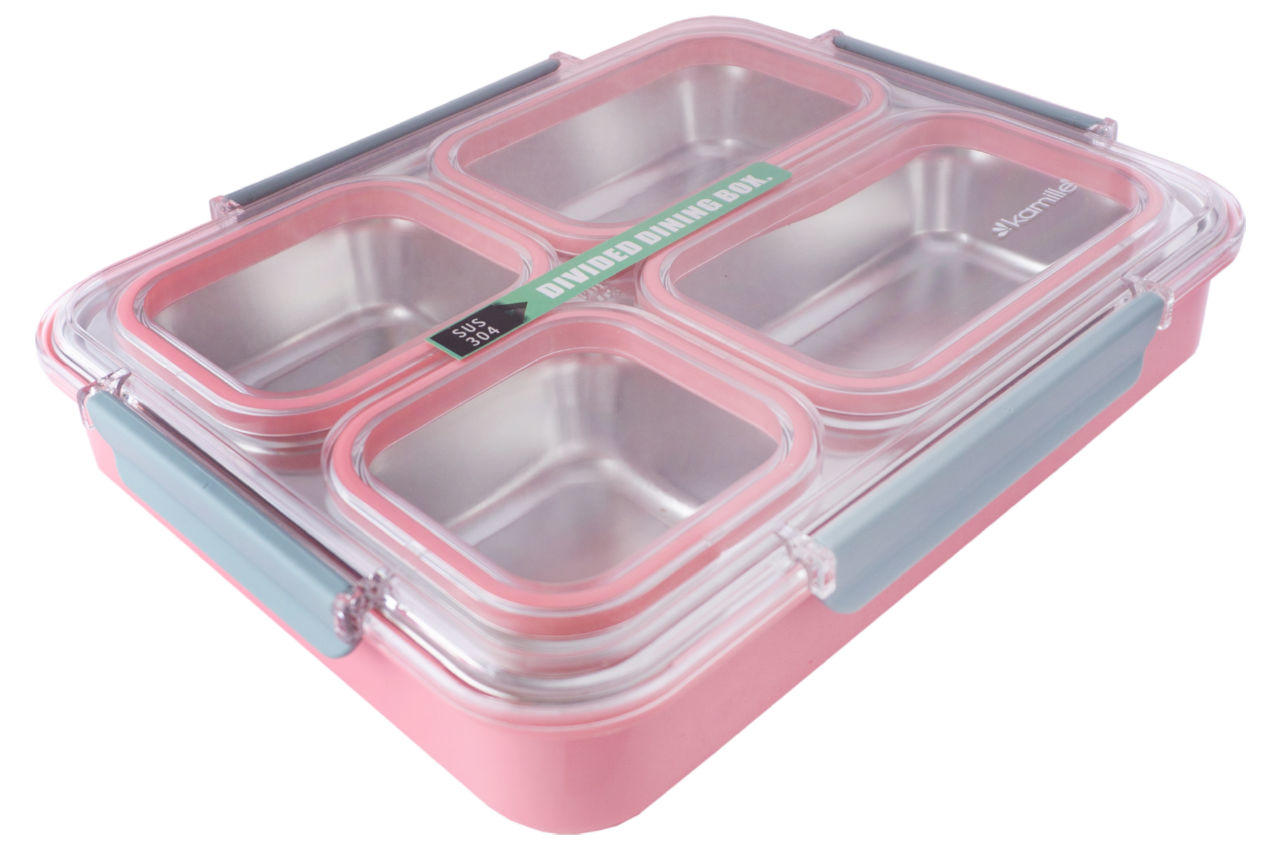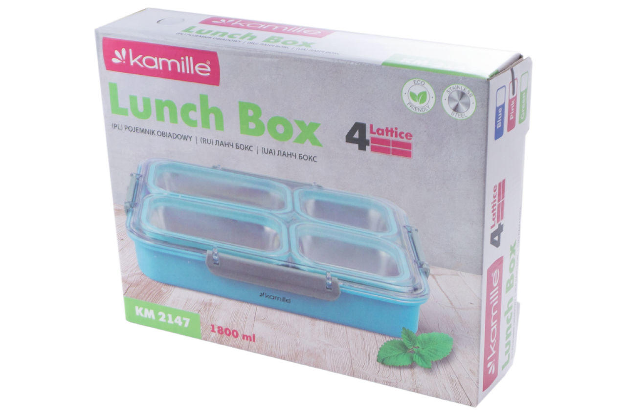 Ланч бокс Kamille володіє високою якістю, надійністю, компактними розмірами і барвистим естетичним дизайном. Ланч бокс чудово підходить для транспортування домашніх обідів і буде просто незамінним для офісних працівників або школярів. Матеріал: корпус, кришка і ручки з пластику; внутрішня ємність з нержавіючої сталі Кількість ємностей: 4