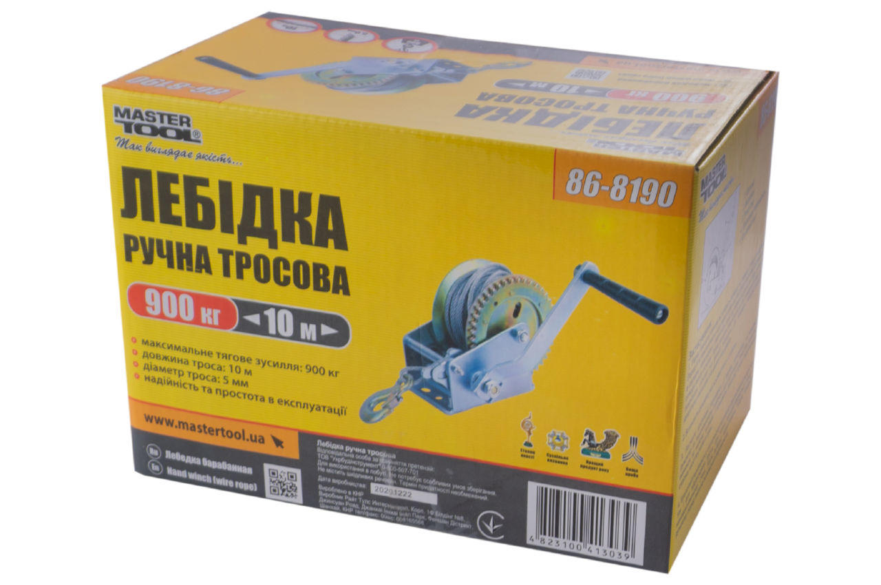 Лебідка барабанна Mastertool - 900 кг x 10 м трос