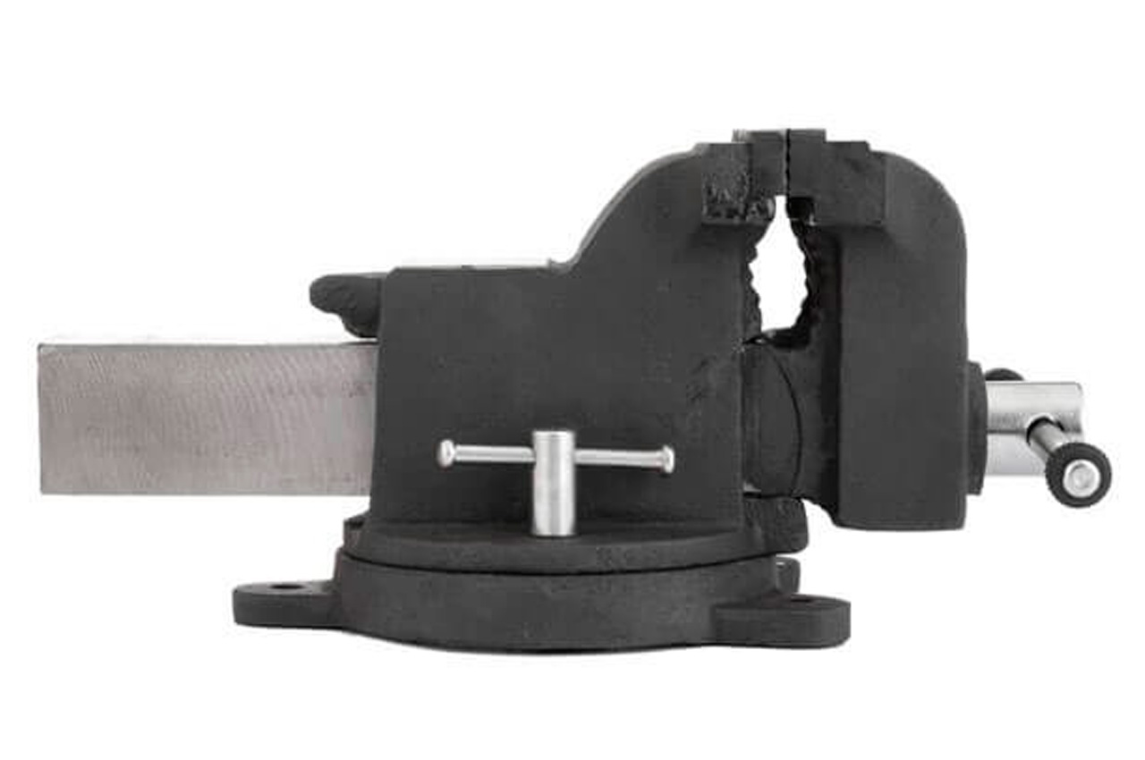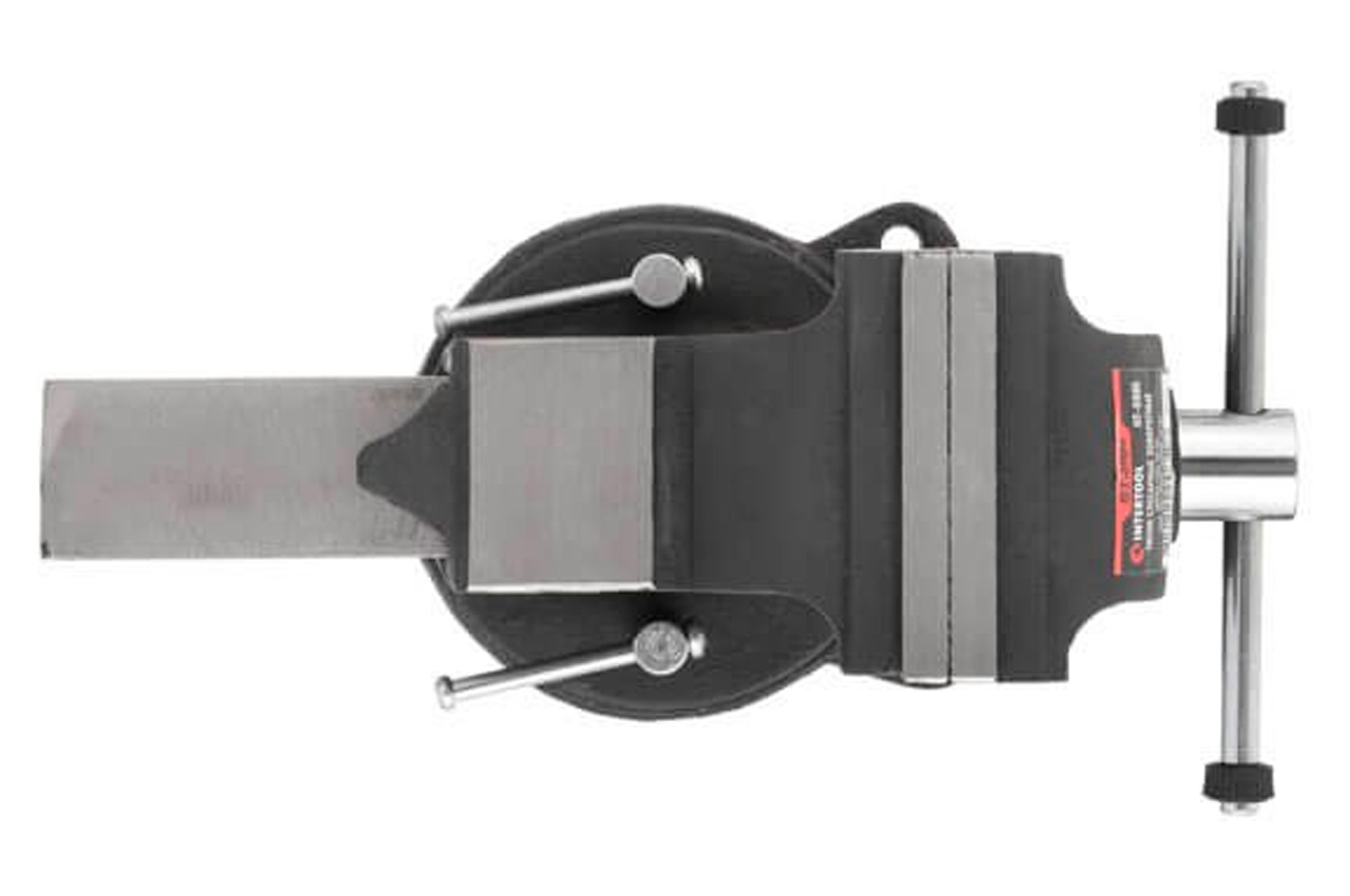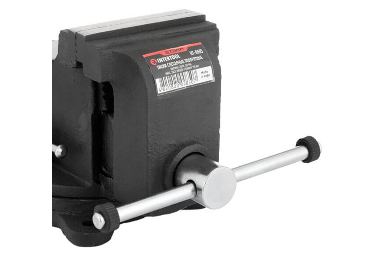 Посилені слюсарні лещата HT-0085 призначені для закріплення заготовок, предметів і деталей для подальшої їх обробки. Конструкція виконана з високоякісної сталі витримує великі навантаження. Посилена металева наковален дозволяє виконувати важкі слюсарні (ударні) роботи. Поворотна база дає можливість розгортати і нерухомо фіксувати заготовку в діапазоні 360 градусів навколо своєї осі для зручності виконання робіт. Загартовані губки з зубчастої поверхнею забезпечують надійне захоплення і зносостійкість робочої поверхні. Лещата можна встановити стаціонарно за допомогою отворів в базі. Довговічні і міцні Чавунні лещата відрізняються міцністю і жорсткістю конструкції. Стінки корпусу виконані таким чином, щоб витримувати великі навантаження, що обумовлено збільшеною вагою лещат даної моделі. Покриті стійкою до деформації порошковою фарбою проти хімічних, механічних і атмосферних впливів. Зручна робота Велика ковадло (в співвідношенні з загальними габаритами лещат) дозволяє комфортно проводити будь-які ударні слюсарні роботи. Ковадло типу «Ріг» дозволяє обробляти закруглені, порожнисті і складної форми заготовки. Загартовані зубчасті губки надійно фіксують виріб і попереджають прослизання. Відрізняються підвищеною зносостійкістю, що дає можливість виконувати більш важкі роботи. Поворотна база розширює можливості фіксації деталей в горизонтальній площині на 360 градусів навколо своєї осі - ви можете зафіксувати заготовку в будь-якому зручному для роботи положенні. Особливості: Матеріал корпусу: чавун; Посилений корпус; Покриття: стійка до деформації порошкова фарба; Велика ковадло; Зубчасті губки із загартованої сталі; Поворотна база, 360 градусів; Поліровані рукоятки. Розмір ковадла: 65/45 мм; Тип губок: знімні; Основа: поворотна; Висота губок: 20 мм; Ширина губок: 100 мм; Ширина захоплення: 100 мм