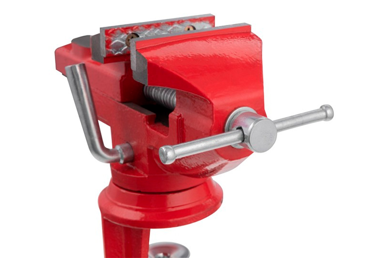 Лещата слюсарні поворотні (ширина губок 60 мм) виготовлені з якісного чавуну. Губки - зі сталі 45 марки. Їх вага складає 2,9 кг. Максимальний зазор між губками - 50 мм, а розкриття кріплення до столу - 45 мм. Ширина губок: 60 мм; Ширина захоплення: 50 мм