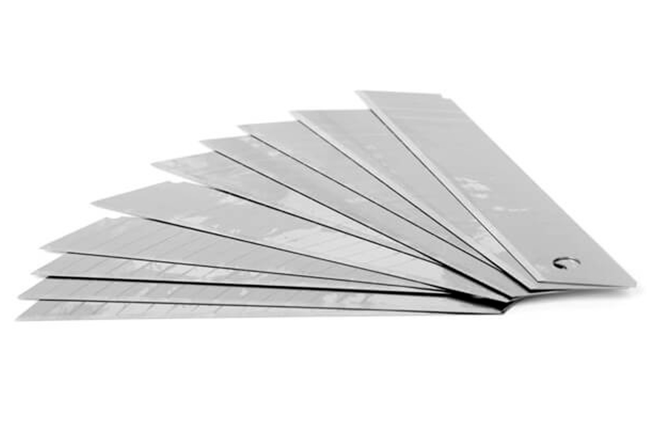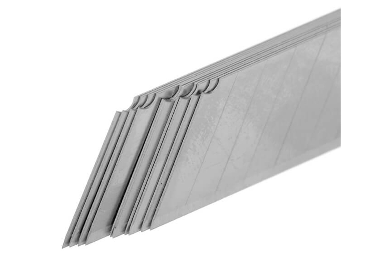 Для швидкої і комфортної роботи, ніж повинен бути гострим і надійним. Щоб не втрачати час на заточку, використовують ножі з лезами розбитими на сегменти (з сегментним лезом). Затупилися сегмент легко відламується, і Ви продовжуєте працювати гострим ножем. Особливості • Лезо ріже ковролін, гіпсокартон, монтажну піну, скотч, плівку, папір і ін. • Великий запас, в одній упаковці 10 лез по 14 сегментів. • Упаковані в зручний пластиковий контейнер, що не губляться, не тупляться і захищені від прямого попадання води. Гострі сегментні леза, шириною 18 мм, використовуються в якості видаткової частини для будівельних, канцелярських і малярських ножів. Виготовлені з інструментальної сталі, мають високу міцність, навіть у формі тонкого вістря. Комплект упакований в пластиковий контейнер. Завдяки цьому Ваші речі захищені від порізів під час перевезення. Пластикова упаковка також захищає від попадання вологи і механічного впливу. Працюйте тільки гострим інструментом з запасними лезами для прорізного ножа! Кількість в упаковці: 10 шт; Кількість сегментів: 14 шт