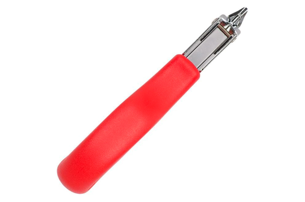 Практичний скобоудалітель (антистеплер) використовують для видалення скоб всіх видів і розмірів. Особливості: Легко і без мук справляється зі скобами, в т.ч. застряглими в глибині виробів. При видаленні не пошкоджує поверхню, завдяки широкій площі дотику. Надійно фіксує і рівномірно розподіляє зусилля відразу на дві ніжки скоби. Зручна рукоятка не перевантажувати руку майстра. Цей удалитель скоб виготовлений з високоміцного інструментального металу з хромованим покриттям. Володіє високою міцністю і не схильний до іржавіння. Нижня частина, що рухається надійно притискає скобу і не дає їй вислизати. Плоский тонкий носик легко справляється навіть з скобами в важкодоступних місцях. Зручна пластикова рукоятка повторює вигини долоні, завдяки чому надійно сидить у руці. Використовуйте цей скобоудалітель і Ваша робота буде просуватися набагато швидше! Матеріал рукоятки: пластик; Висота скоби: від 4 мм; Покриття: хромоване