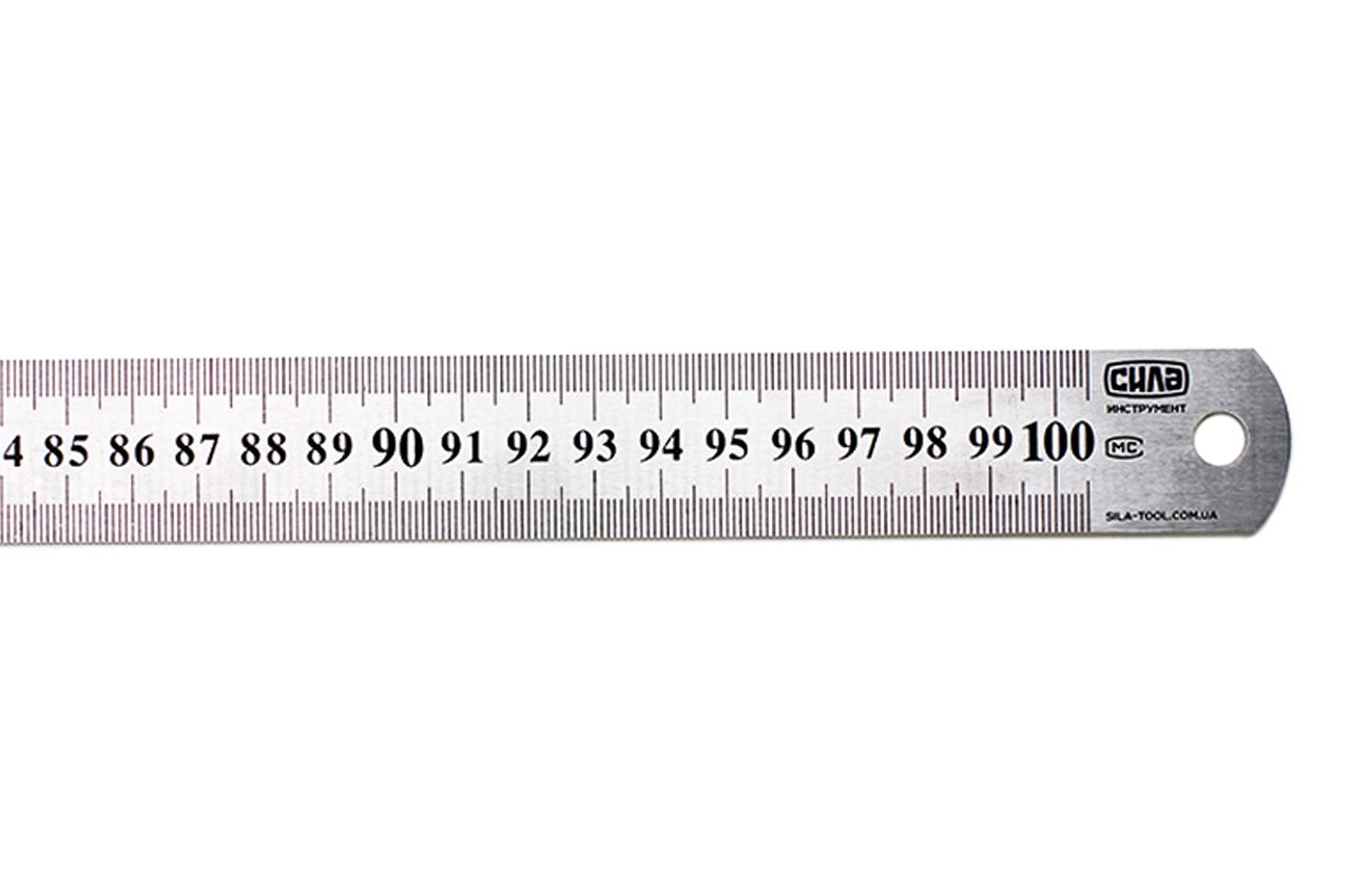 Лінійка вимірювальна, 1000 мм, нержавіюча сталь. Призначена для вимірювань зовнішніх і внутрішніх розмірів, товщин і глибин. Товщина: 0,7 мм
