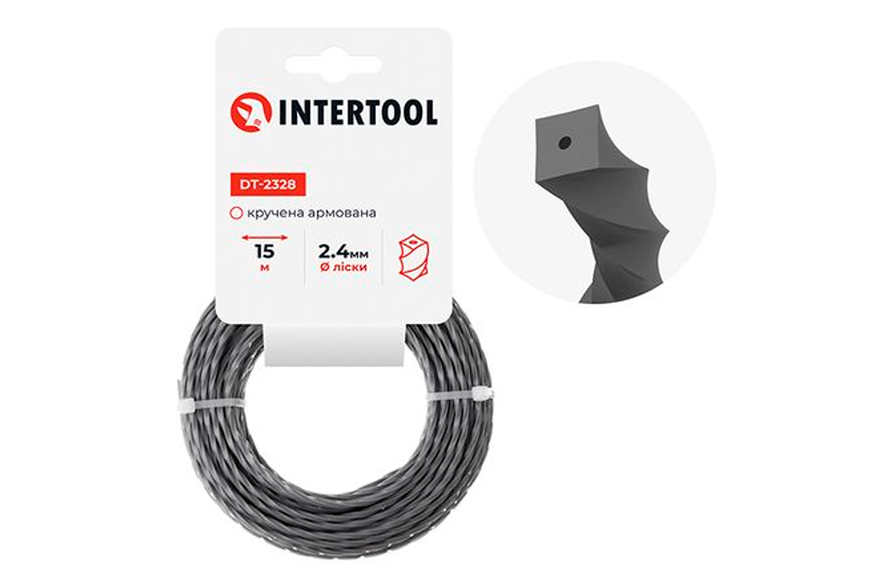 Лісочка для тримера або мотокоси, являє собою незамінний аксесуар для догляду за садом, газоном, присадибною ділянкою та ін. Дана волосінь має форму "квадрат кручений" і поставляється у зручному мотку, довжиною 15 метрів. Армована конструкція надає волосіні більше міцності, вона більш стійка до зносу та на урвище. Також забезпечується більш швидке різання, ідеальне для покосу щільної рослинності, бур'янів, порослів, гілок. Лісочка з діаметром перерізу 2,4 мм забезпечує більш точне та акуратне різання газонної трави та дрібних рослин. Ідеально підходить для роботи у вузьких та важкодоступних місцях, таких як кути саду або біля країв газону. Важливо пам'ятати, що волосінь з діаметром перерізу 2,4 мм може бути менш ефективною при обробці товстіших стебел або твердих рослин.