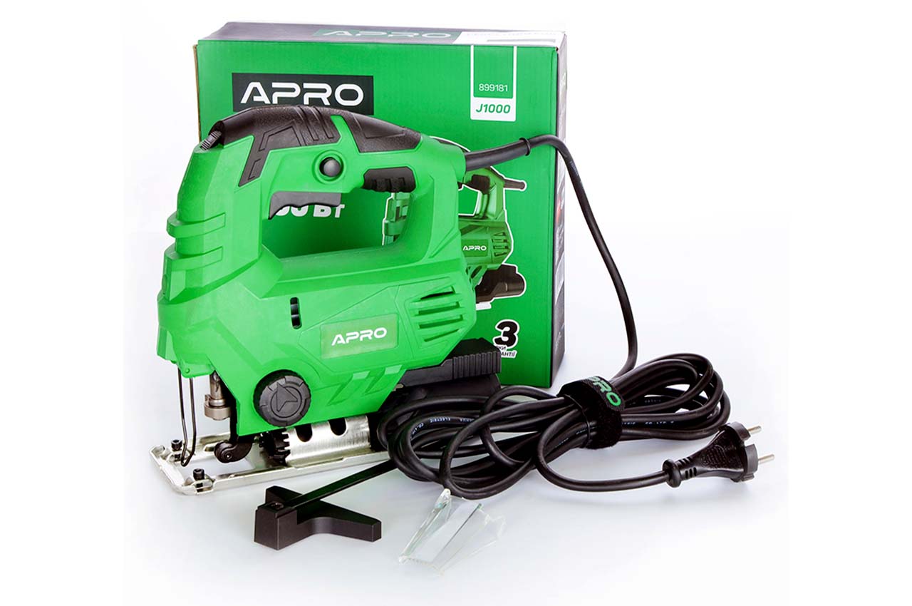Лобзик електричний APRO J 1000 Вт 3500 об/хв з маятниковим ходом – це електричний ручний інструмент із зворотно-поступальним рухом пили. Він призначений для виконання розпилювання та вирізів у деревині, синтетичному матеріалі, металі, керамічних плитах, гумі. Оскільки електроінструмент має широкий вибір програм застосування пильного полотна та допоміжного приладдя, він багатофункціональний і найкраще підходить для кутового або кругового різання. Маятниковий хід або так зване "підкачування" підвищує швидкість розпилу матеріалу. Він особливо ефективний при великому плані робіт із великогабаритним матеріалом. Маятниковий хід має три положення: 0 – вимкнено; 1 - малий хід (підходить для твердих матеріалів); 2 – максимальний хід (призначений для деревини та інших м'яких матеріалів). Завдяки цій функції швидкість різання значно збільшується (майже 2 разу).