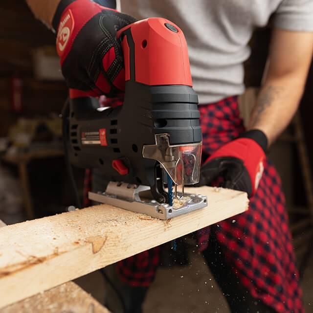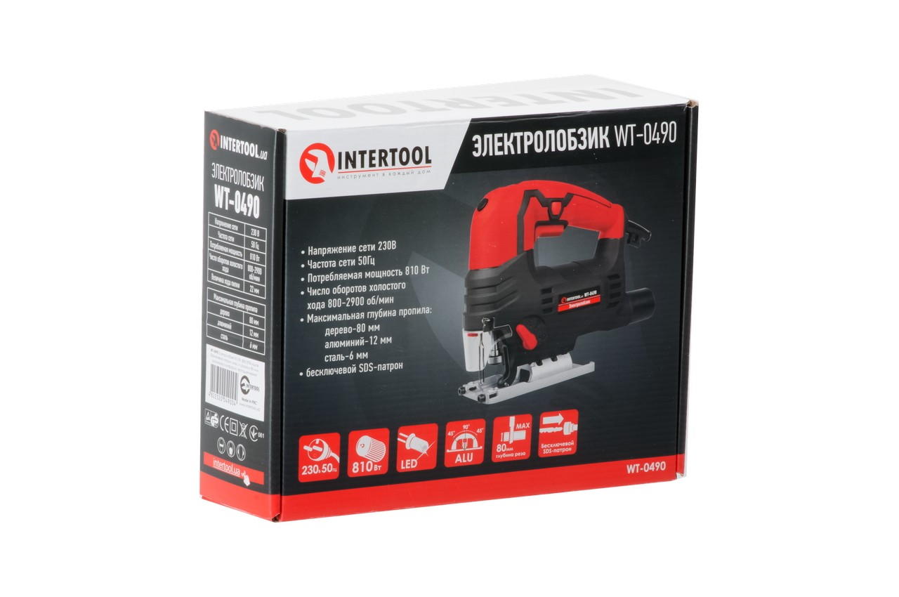 Електричний лобзик WT-0490 ідеально підходить для виконання будівельно-ремонтних робіт, також це необхідний електроінструмент в побуті. Легко розпилює деревину, полімерні матеріали, метал, керамічні плити. Ручний лобзик має високу швидкість руху пилки, до 2900 хід / хв і гарантує високоефективне пиляння дерева товщиною до 80 мм, стали до 6 мм, м'яких металів до 12 мм. Довжина ходу ріжучого полотна складає 20 мм. Цей лобзик підходить як для домашнього використання, так і для професійних робіт - рез виходить чистим і акуратним, також їм можна виробляти фігурне випилювання з кутом нахилу від 90 до 45⁰. Регулювання оборотів дозволяє підібрати оптимальний режим обробки різних матеріалів. Регулювання маятникового ходу дає можливість вибрати необхідну швидкість пропила. Швидка і легка заміна ріжучих полотен здійснюється за допомогою безключового патрона SDS-plus. Електролобзик оснащений зручною ручкою з прогумованої рукояткою, вона не ковзає в руці і гарантує повний контроль над робочим процесом. Легка алюмінієва платформа не ускладнює лобзик і їм комфортно працювати тривалий час. Також для зручності оператора під час тривалих робіт передбачена кнопка з фіксацією положення включення. Особливості • Легкий і компактний електролобзик, з двигуном 810 Вт • Регулювання оборотів • Регулювання маятникового ходу • Бесьключевой патрон • Точна настройка кута розпилу 0⁰, 15⁰, 30⁰, 45⁰ • Фіксатор включення для тривалих робіт • Алюмінієва платформа • LED-підсвітка робочої області • Захисний прозорий екран Надійний, міцний електропровід НЕ заламується і довго служить. На вході електропроводу в інструмент встановлений захист від переломлення дроти зі зручним фіксатором шестигранного ключа, який завжди у Вас під рукою. Комплектація Лобзик електричний Шестигранний ключ Інструкція Гарантійний талон Особливості: алюмінієва платформа, Led-підсвічування; Кут нахилу: 0/15/30/45 град; Хід пилки: 22 мм; Максимальна глибина пропила: дерево - 80 ммметалл - 12 ммалюміній - 6 мм .; Потужність: 810 Вт; Частота ходу: 800-2900 хід / хв Потужність: 810 Вт; Частота ходу: 800-2900 хід / хв Потужність: 810 Вт; Частота ходу: 800-2900 хід / хв