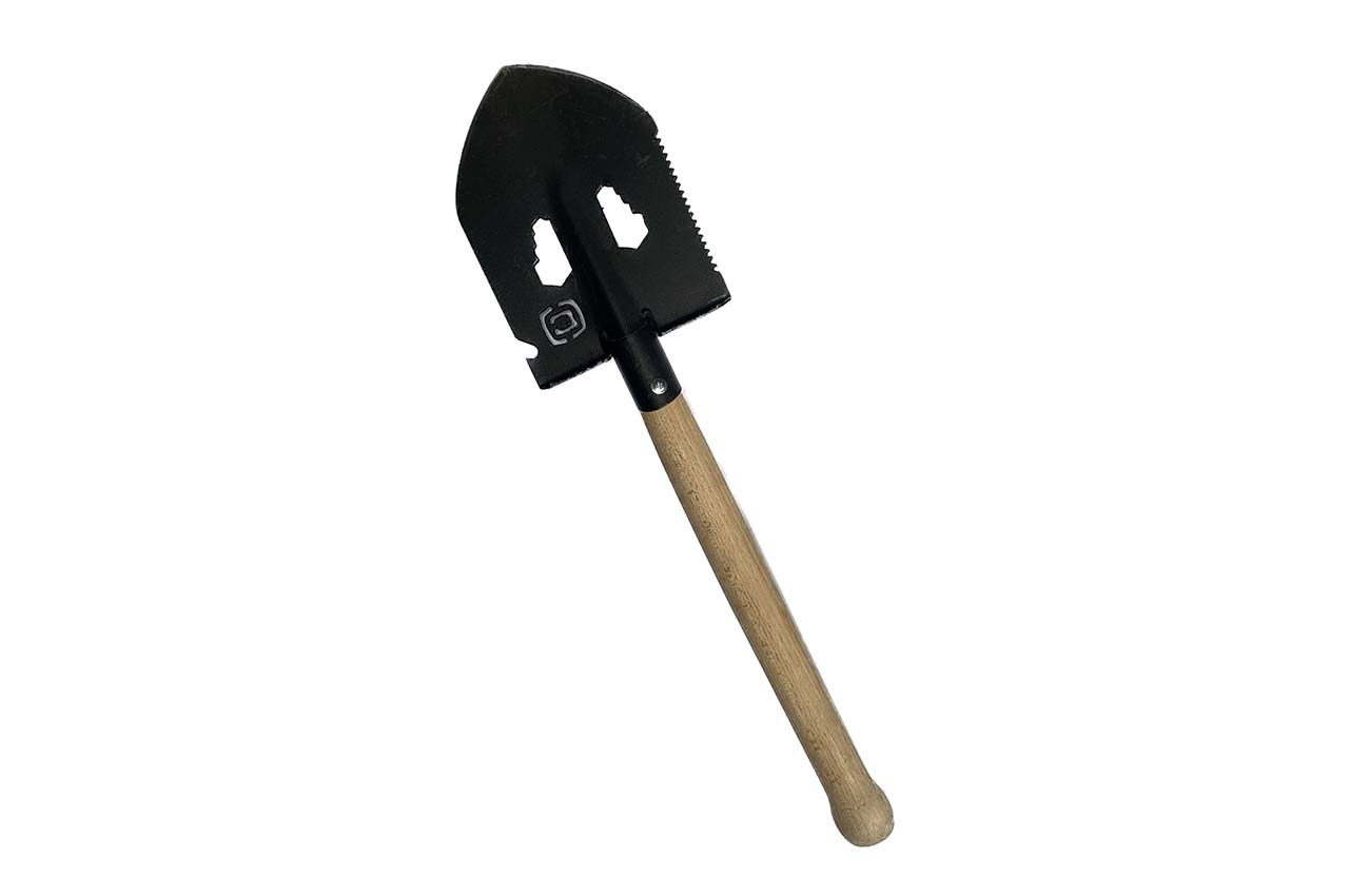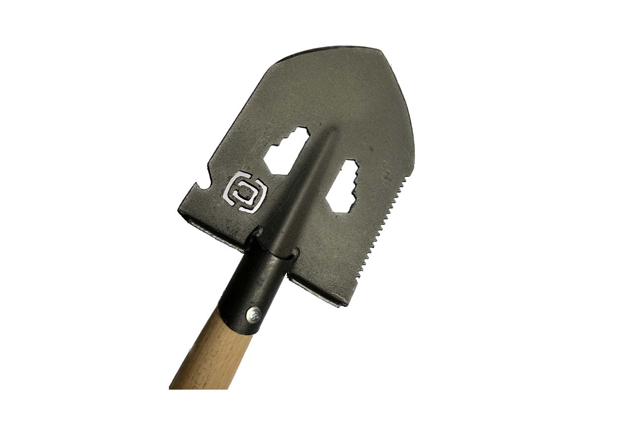 Лопата саперна Сила - 523мм кемпер виготовлений із металу 2мм, дерев'яний воскований черешок. На робочій частині - пилка, відкривання, прорізи для ісп-я як накидних ключів, жало робочої частини із зазубринами (для кращого різання коренів).