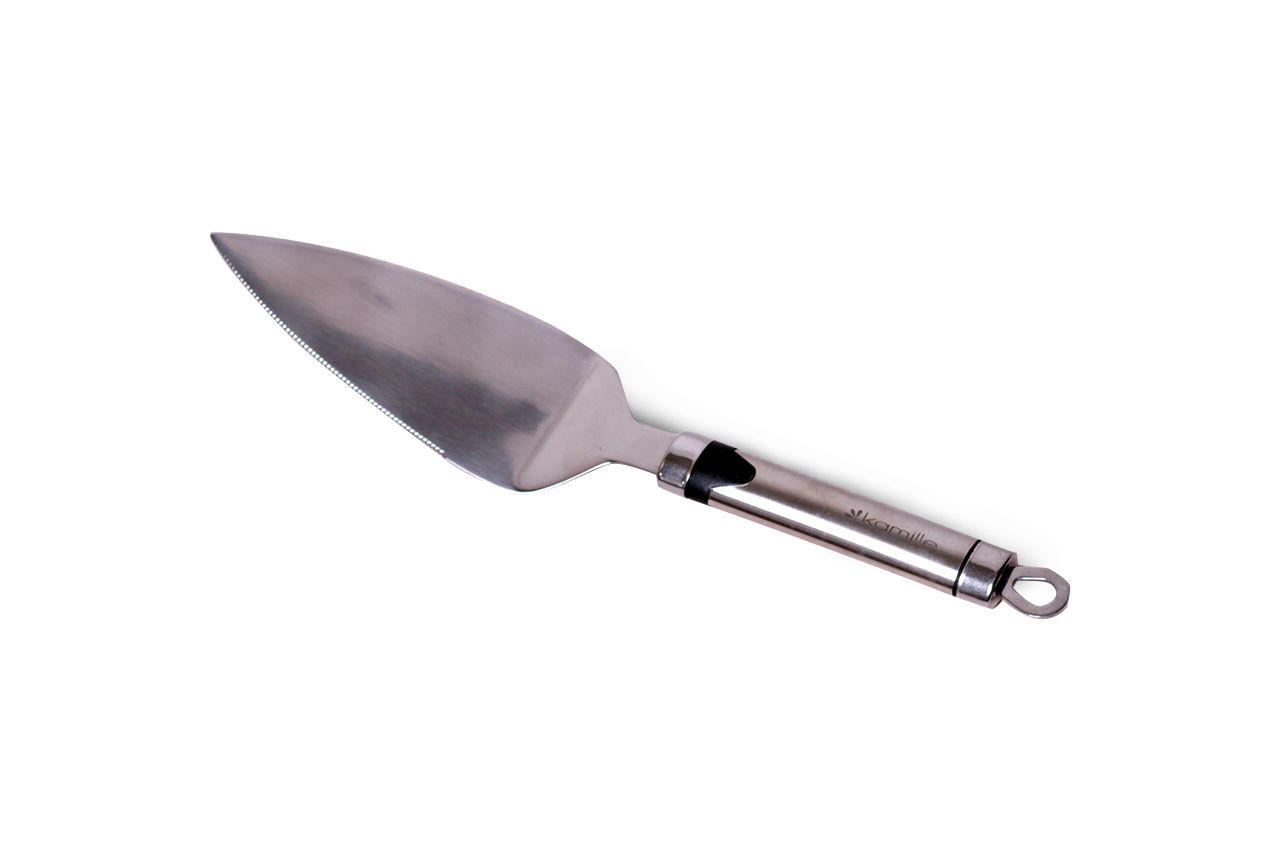 Лопатка для торта Kamille - лопатка трикутної форми з вигином дозволяє зручно підбирати з блюда шматочки відрізаного пирога або торта і перекладати їх на індивідуальні тарілки.