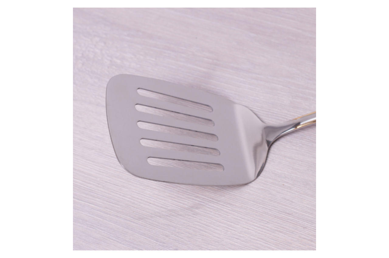 Лопатка Kamille - для приготування їжі на сковороді. Робоча частина виготовлена з нержавіючої сталі, яка не впливає на смак та запах їжі, легко миється. Оснащена зручною ергономічною ручкою. Відмінна лопатка для домашнього чи професійного використання