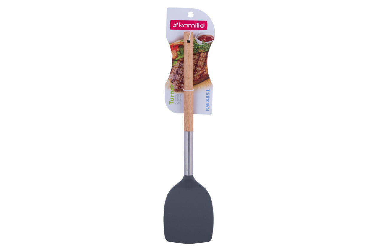 Лопатка Kamille - чудовий помічник на кухні, а її стильний дизайн неодмінно підійде до інтер'єру Вашої кухні. Матеріал робочої частини: нейлон. Матеріал ручки: нержавіюча сталь, дерево.