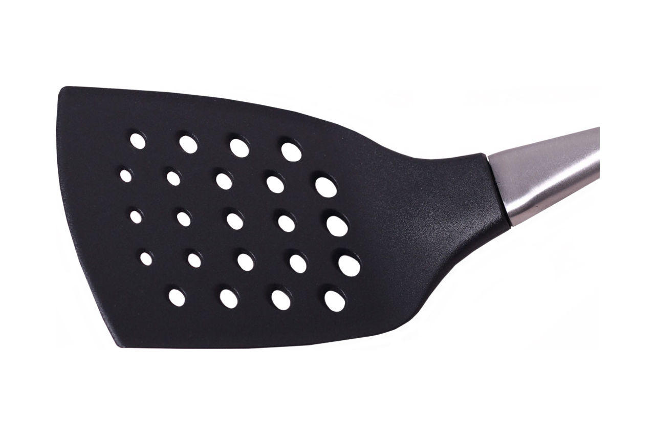 Лопатка кухарська – чудовий помічник на кухні, а її стильний дизайн неодмінно підійде до інтер'єру Вашої кухні. Матеріал ручки: нержавіюча сталь Матеріал робочої частини: пластик Довжина загальна: 34см Довжина ручки: 22см Довжина робочої частини: 12см