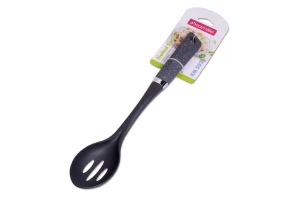 Ложка кухарська - чудовий помічник на кухні, а її стильний дизайн неодмінно підійде до інтер'єру Вашої кухні. Матеріал ручки: нержавіюча сталь Матеріал робочої частини: пластик Довжина загальна: 34см Довжина ручки: 22см Довжина робочої частини: 12см