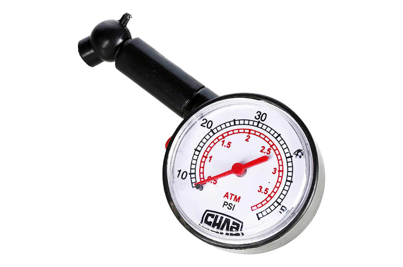 Прилад, що вимірює тиск рідини або газу. Дія манометра засноване на зрівноважуванні вимірюваного тиску силою пружної деформації трубчастої пружини або більш чутливою двохпластинчаста мембрани, один кінець якої запаяний в тримач, а інший через тягу пов'язаний з трібко-секторних механізмом, що перетворює переміщення пружного чутливого елемента в круговий рух показує стрілки. Додатково: Кнопка скидання; Матеріал корпусу: пластик; Тип: аналоговий датчик