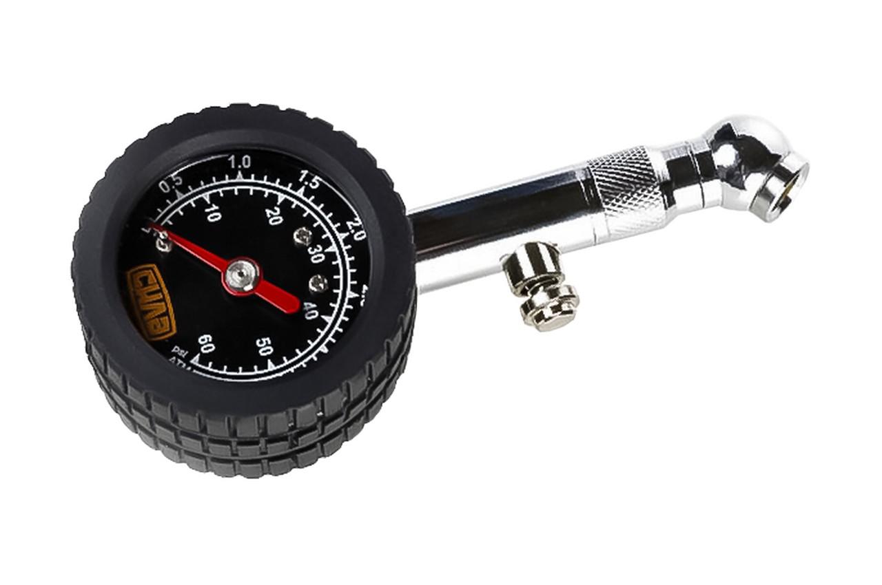 Прилад, що вимірює тиск рідини або газу. Дія манометра засноване на зрівноважуванні вимірюваного тиску силою пружної деформації трубчастої пружини або більш чутливою двохпластинчаста мембрани, один кінець якої запаяний в тримач, а інший через тягу пов'язаний з трібко-секторних механізмом, що перетворює переміщення пружного чутливого елемента в круговий рух показує стрілки. Додатково: Кнопка скидання; Матеріал корпусу: метал з гумовим покриттям; Тип: аналоговий датчик