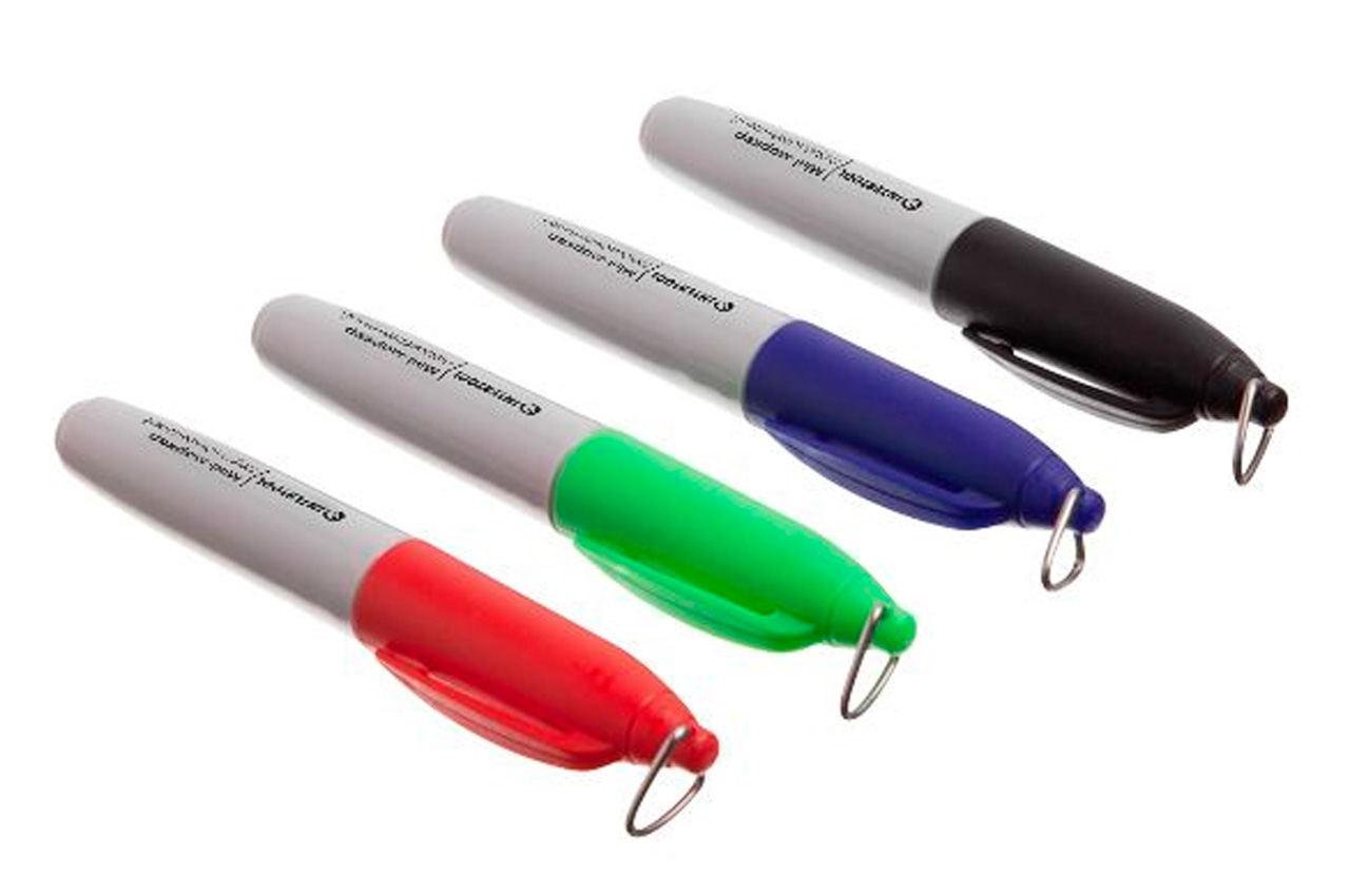 Маркери невеликої довжини, залишають практично не стирається, стійкий слід. Добре пишуть по різних поверхнях, таким як: метал, бетон, цегла, дерево, скло, картон, пластик і кераміка. Також можуть без проблем писати на інших матеріалах: на вологому дереві, плівці, кахлі та ін. Залишають помітний, яскравий слід, а особливий склад стан картриджів не роз'їдає поверхню, на яку нанесено напис. Різноманітність кольорів (чорний, синій, червоний і зелений) дозволить зручно розрізняти мітки, наприклад для позначення проводів (фаза, земля, нуль, і т.д.). Маркери ідеально підійдуть як для виробництва, так і для майстрів: електриків, будівельників, фахівців в вентиляції і сантехніків. Такі міні-маркери незамінні в побуті, для власних господарських потреб. Щось відміряти, поставити позначку або накреслити - не завдання! Повісьте маркер за верхнє кріпильний кільце до ключів, як брелок, і він завжди у Вас під рукою! Особливості Термін придатності не обмежений; Не містять шкідливих речовин. Колір: чорний, синій, червоний, зелений; Кількість в упаковці: 80 од.