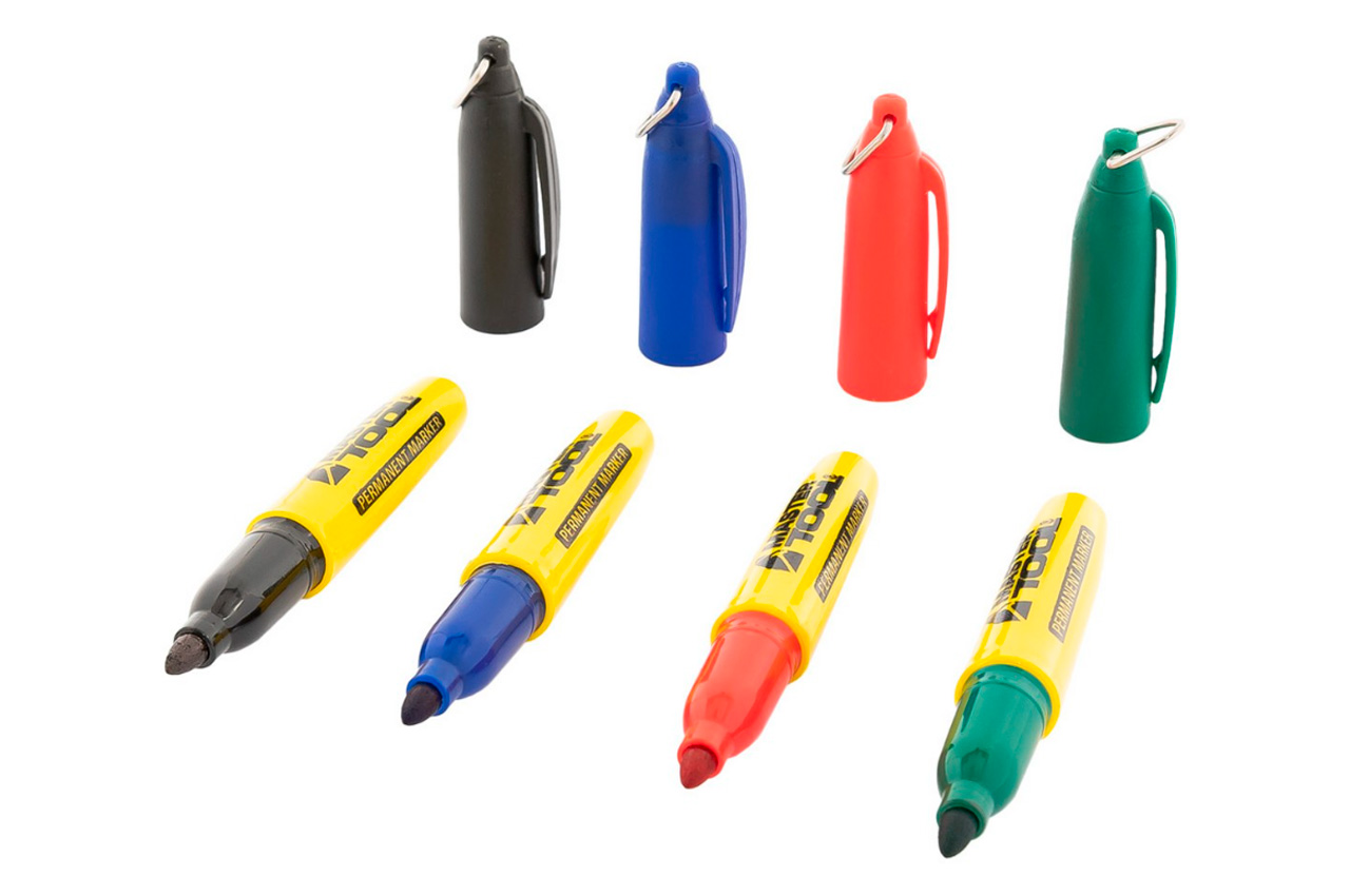 Маркер перманентний Mastertool – використовується для маркування пластику, скла та інших матеріалів. В упаковці 4 різнокольорових маркери.