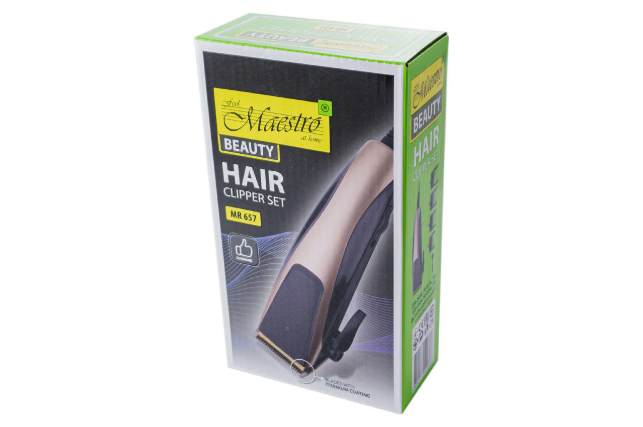 Машинка для стрижки Maestro MR-657TI відрізняється гранично простою конструкцією, елементарним керуванням та довгим експлуатаційним терміном. Ідеальний варіант для щоденного використання. Характеристики: - Потужність: 7 Вт - Тип харчування: мережа - Матеріал лез: нержавіюча сталь - Матеріал покриття: титан - Кількість насадок: 4 - Кількість рівнів стрижки: 4 - Довжина стрижки: 3-12 мм