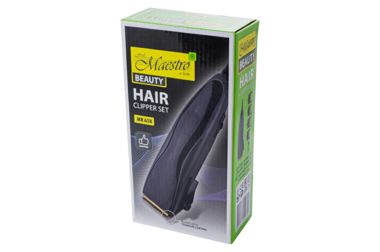 Машинка для стрижки Maestro MR658Ti допоможе в домашніх умовах створити стильну та унікальну стрижку. Є можливість вибрати одну з представлених насадок, щоб досягти бажаної довжини: 3, 6, 9 та 12 мм. Процес відбувається швидко та безболісно, з мінімальним шумом. Корпус довгі роки виглядатиме презентабельно, оскільки розроблений із стійкого до пошкоджень пластику. У комплект з машинкою входить гребінець і ножиці, а також щіточка для чищення леза та масло для їх змащування.