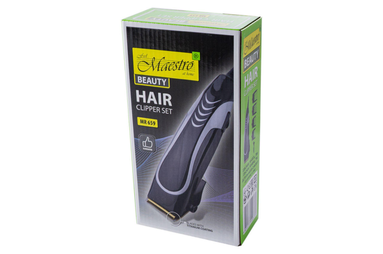 Машинка для стрижки Maestro MR-659TI вона відрізняється гранично простою конструкцією, елементарним керуванням та довгим експлуатаційним терміном. Ідеальний варіант для щоденного використання. Характеристики: - Потужність: 7 Вт - Тип харчування: мережа - Матеріал лез: нержавіюча сталь - Матеріал покриття: титан - Кількість насадок: 4 - Кількість рівнів стрижки: 4 - Довжина стрижки: 3-12 мм