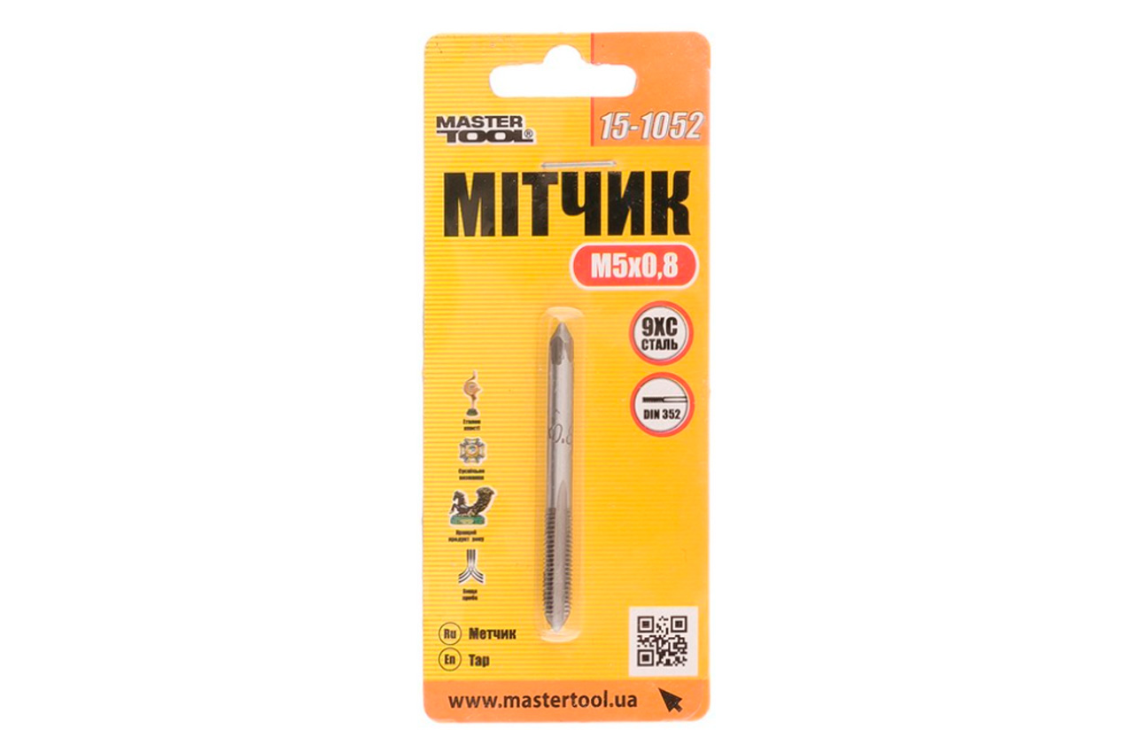 Метчик сталь Р6М5. Призначається для нарізання внутрішнього різьблення на металевих виробах. Діаметр 5 мм Крок різьблення 0,8 мм Метрична різьба DIN 352