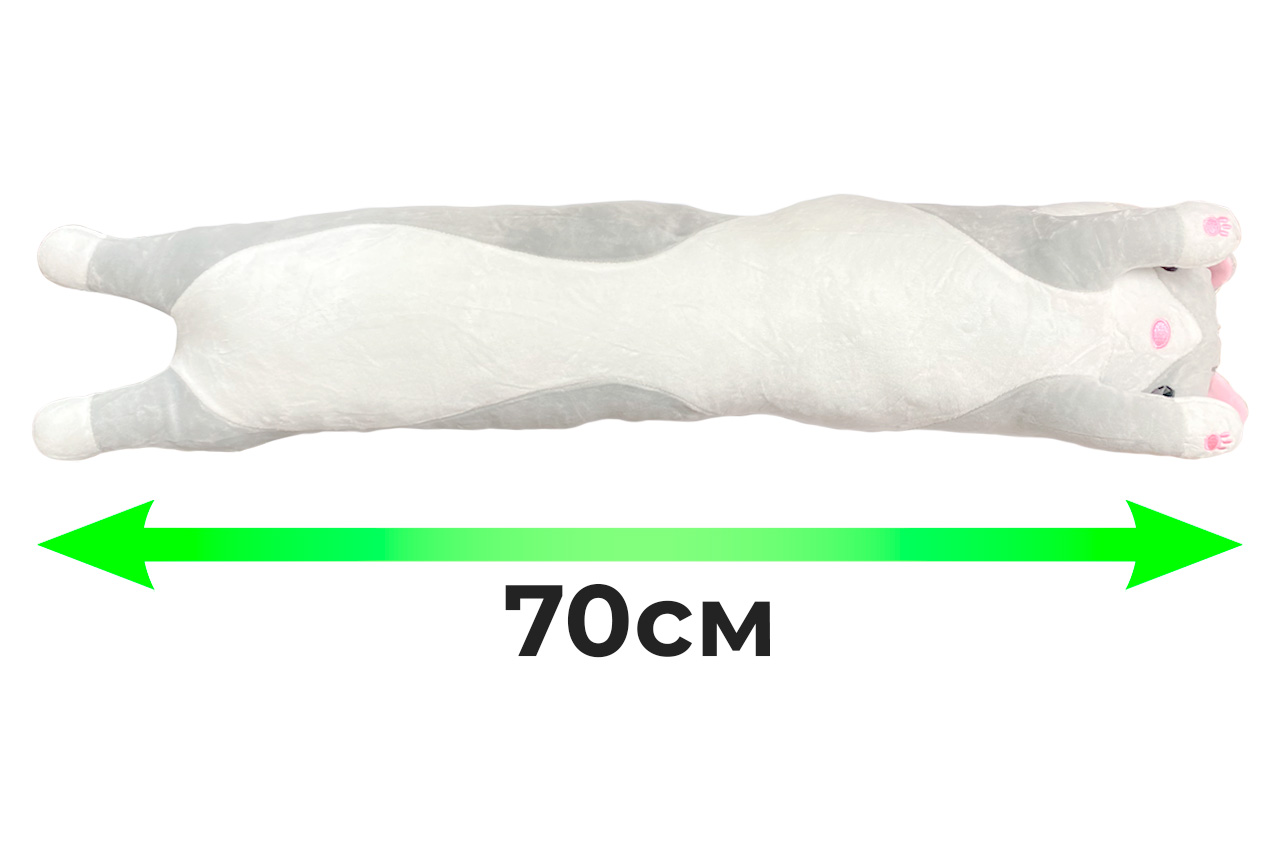 М’яка іграшка «Кіт Батон» стане улюбленим другом для дітей та прикрасою інтер’єру. Виготовлена з високоякісного плюшу, наповнена безпечним гіпоалергенним матеріалом, вона м’яка на дотик і стійка до частого використання. Довжина 70 см