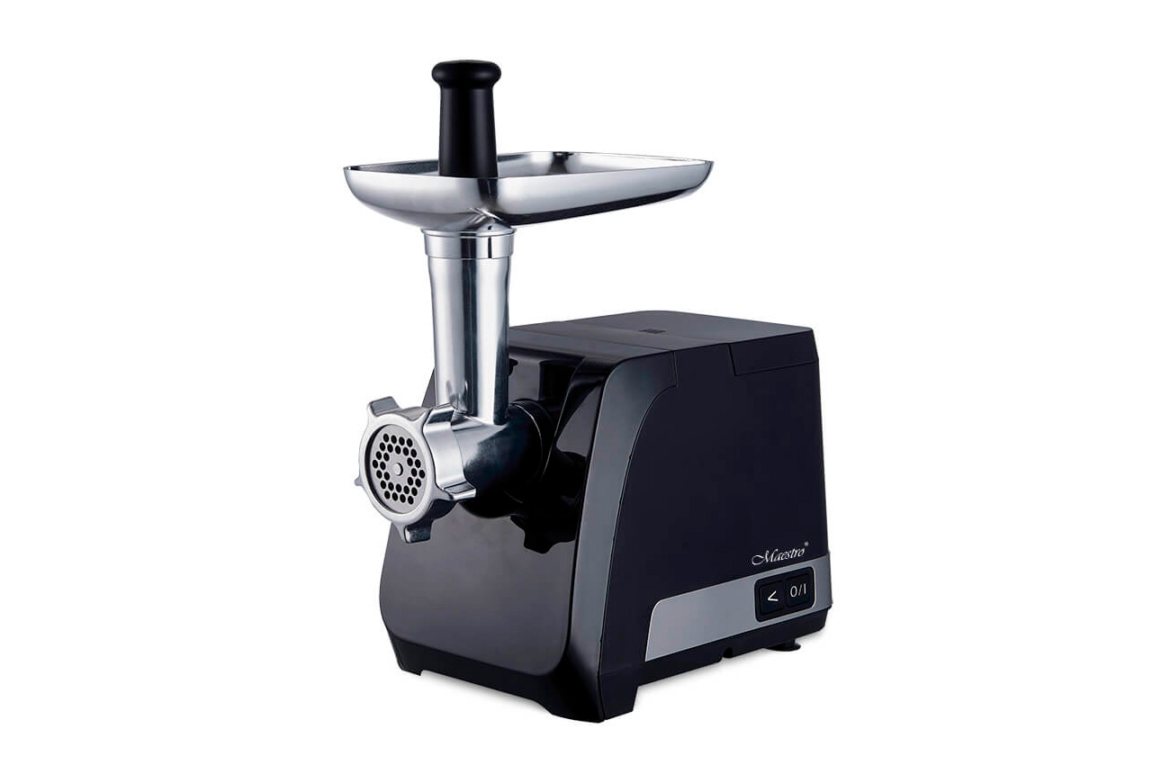 Електрична м'ясорубка Maestro MR-855 потужністю 2000 Вт виконана у чорному кольорі. Вона оснащена міцним металевим лезом та кількома насадками для різних типів подрібнення. Пристрій має функцію реверсу, що запобігає його забиванню, та зручний контейнер для збирання м'яса. Також передбачений знімний лоток та антиковзні ніжки для стабільності в процесі роботи.
