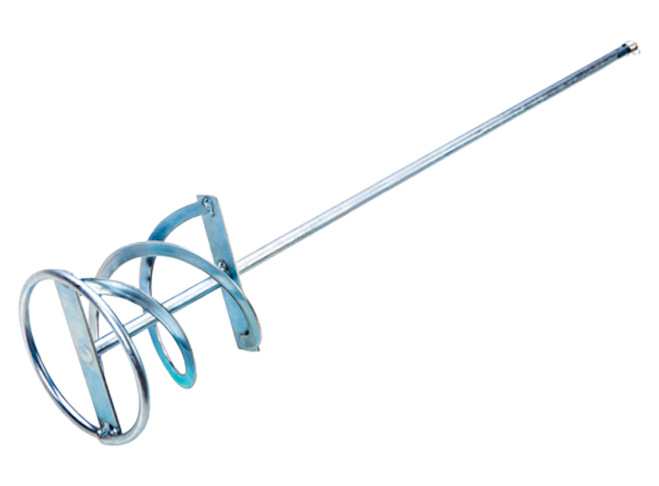 Міксер застосовується для перемішування важких вузьких сумішей: цементних розчинів, штукатурок, клейових розчинів для плитки тощо. Являє собою металевий оцинкований віночок у вигляді правостороннього спіралі. Вона створює ефект перемішування від низу до верху - матеріал підхоплюється з дна ємності і виштовхується до поверхні, а потім знову опускається вниз. Має круглий стрижень з SDS-Plus наконечником.