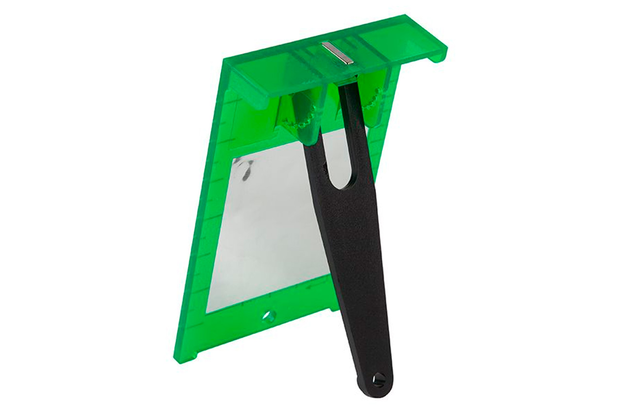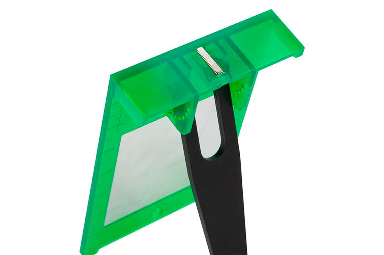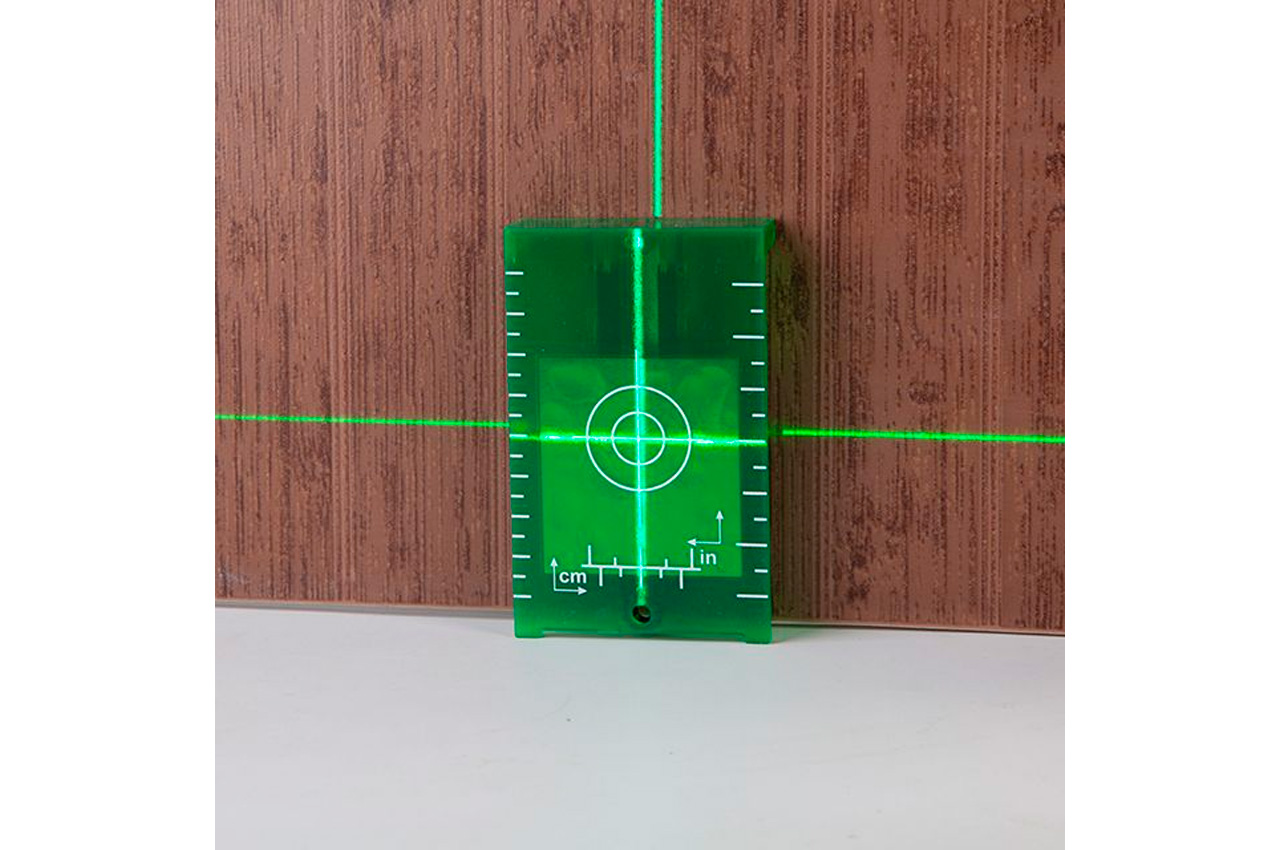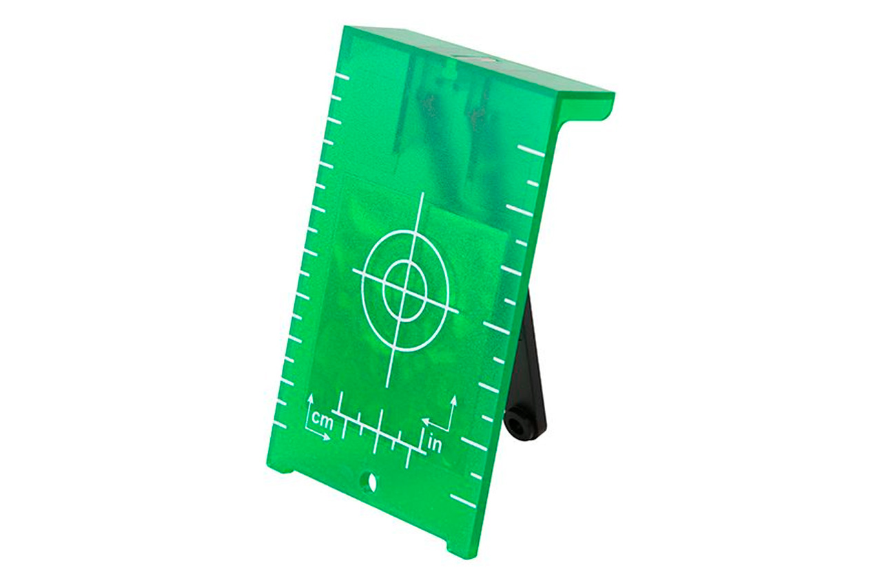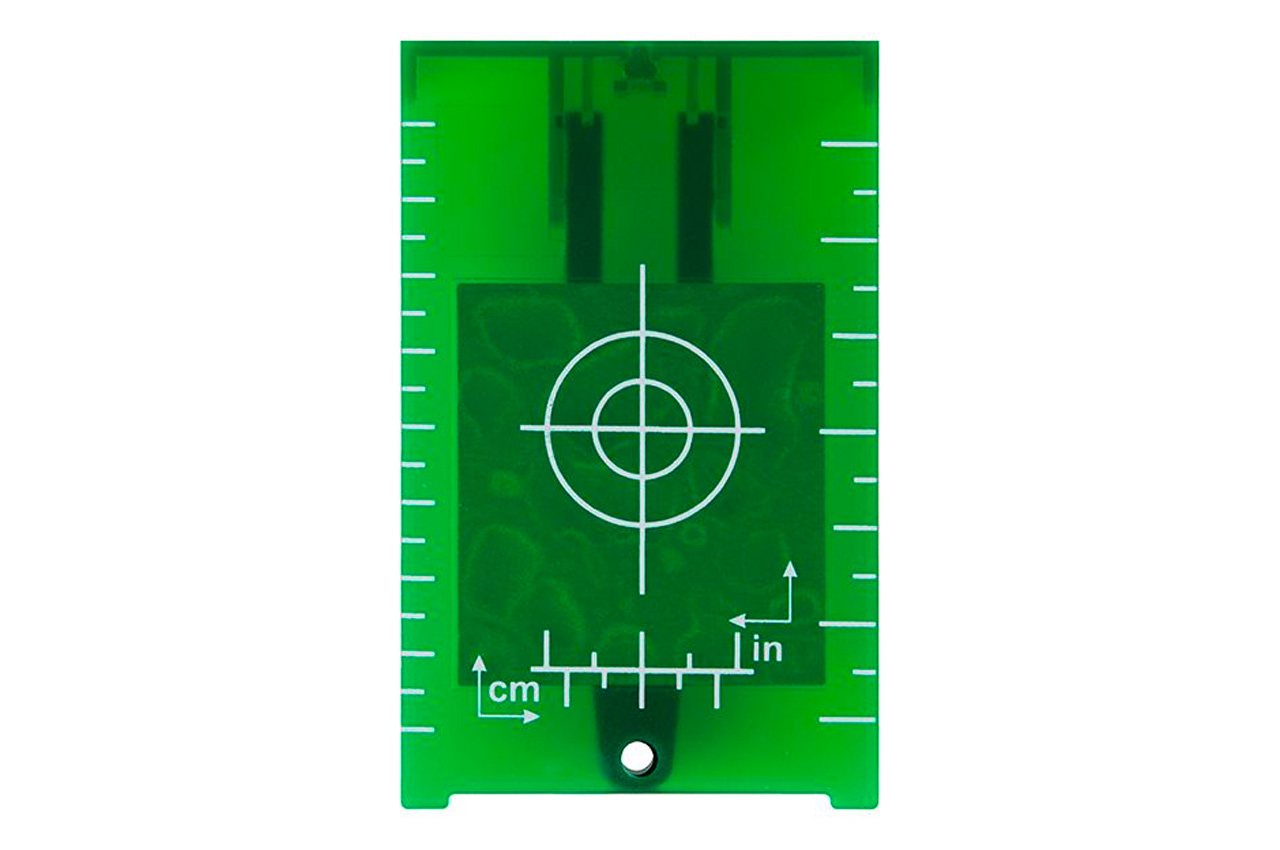 Магнітна мішень використовується у парі з лазерними рівнями, далекомірами під час розмічання площин, зведення стін, монтуванні обладнання, вирівнювання підлоги та інших ремонтних та будівельних робіт. Цей пристрій збільшує видимість лазерних променів зеленого кольору при яскравому освітленні, що значно полегшує роботу майстра. Наявність дюймової та метричної розмітки допоможе задати кут або максимально точно вирівняти поверхні. Мішень кріпиться за допомогою магніту до металевих деталей і конструкцій, або підвішується на стіну за допомогою отвору на цвях або саморіз. Також її можна легко покласти горизонтально. У комплекті до мішені передбачені окуляри відповідного кольору, які є незамінними у роботі з лазерним обладнанням, оскільки збільшують дальність роботи з приладом та видимість лазерних ліній усередині та зовні приміщень. Це корисний комплект на всі випадки ремонту та ідеальний для робіт під час встановлення підвісних стель.