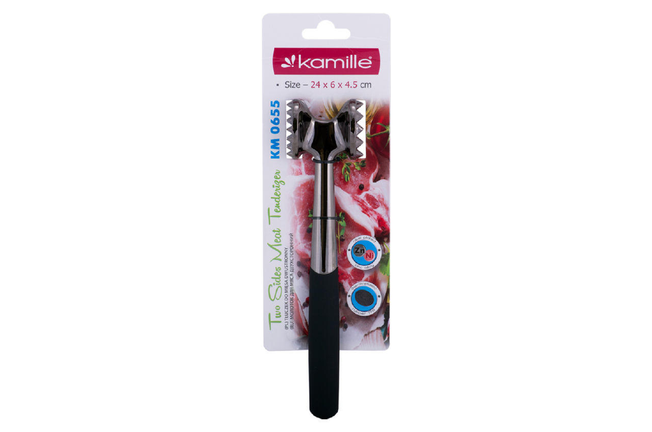 Молоток для відбивання м'яса Kamille незамінний на кухні і прослужить Вам довгі роки. З допомогою такого молотка Ви зможете швидко і легко відбити м'ясо, а його стильний дизайн неодмінно підійде до інтер'єру Вашої кухні.