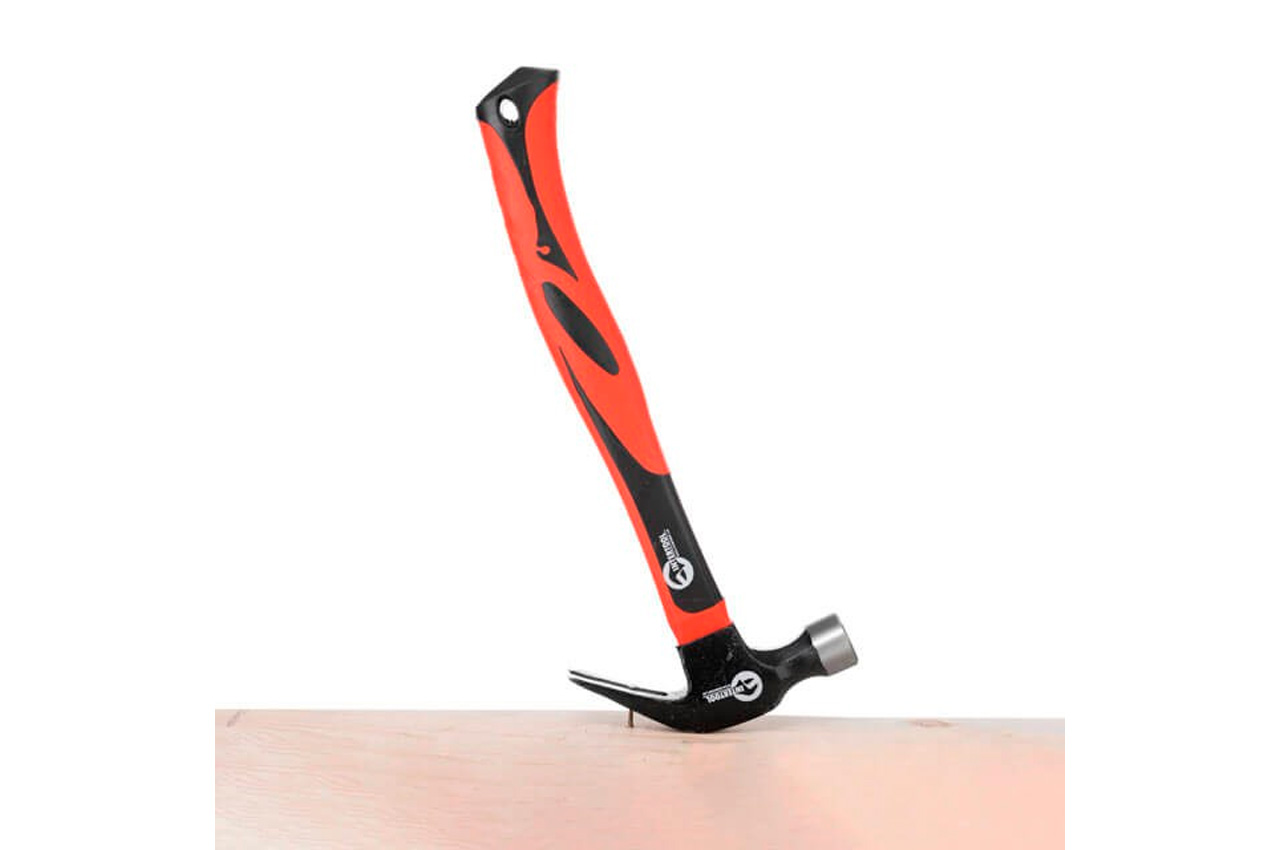 Молоток-обценьки застосовується для робіт з дерев'яними матеріалами, демонтажем та висмикуванням цвяхів. Тильна сторона - роздвоєна вилка у вигляді ластівчин хвіст, загнутого донизу, дозволяє легко виймати глибоко вбиті цвяхи. Ручка молотка виконана з фібрегласса (скловолокна) - матеріалу, який добре проявив себе у використанні. Він має дві переваги: не розсихається з часом і не схильний до розбухання при контакті з водою. Допомагає знизити силу віддачі при ударі. Особливості Оголовье столярного молотка (450 м), довговічне і міцне; Нероз'ємне з'єднання головки з ручкою молотка, за рахунок поєднання особливої форми деталей і використання епоксидної смоли; Антивібраційна ручка з фибергласса; Зручно лежить в руці і не ковзає за рахунок гумового покриття з пластиковими вставками; Практичний - є отвір для підвісу. Працюйте тільки надійними інструментами, таким як обценьки від INTERTOOL! Загальна довжина: 335 мм; Тип молотка: молоток столярний; Матеріал рукоятки: фіберглас