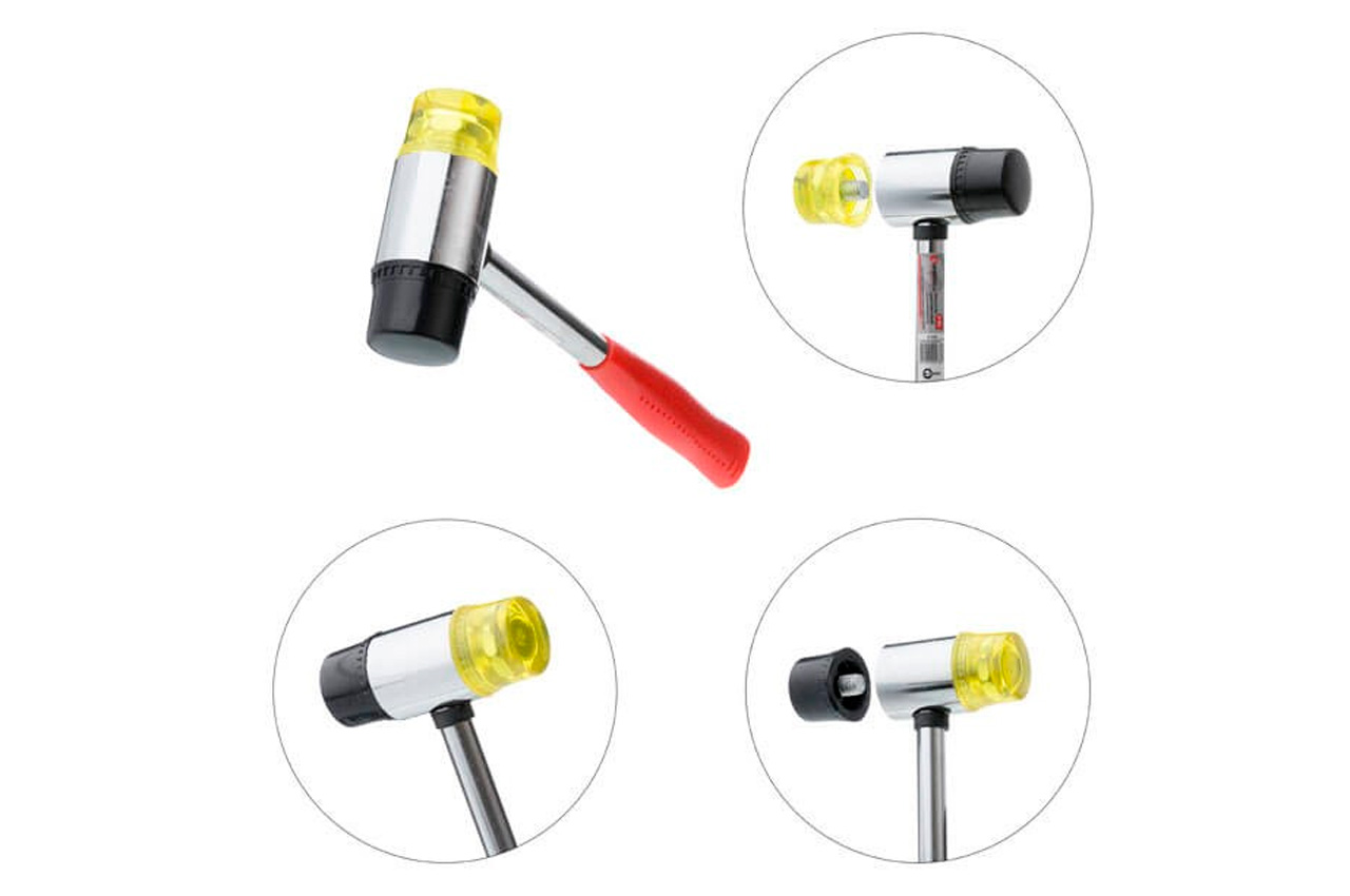 Молоток рихтувальний 35мм з металевою рукояткою, гумовий і поліуретановий змінні бойки. Тип молотка: молоток рихтовочний; Діаметр бойка: 35 мм