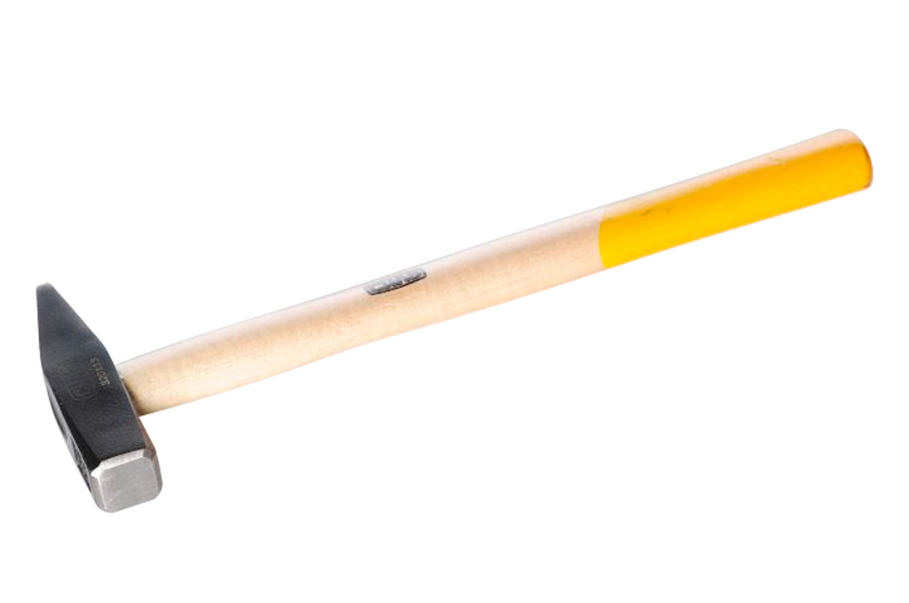 Молоток слюсарний з дерев'яною ручкою. Матеріал бойка: інструментальна сталь, загартована ударна поверхня. Матеріал рукоятки: дерев'яна. Вага бойка: 800гр; Матеріал бойка: інструментальна сталь, загартована ударна поверхня; Матеріал рукоятки: дерев'яна; Тип бойка: молоток слюсарний