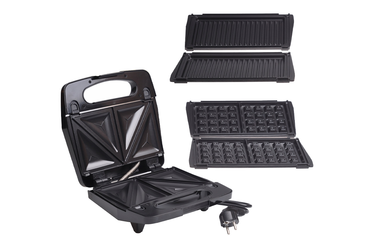 Гриль Бутербродниця Kamille – мультимейкер 3в1. Знімні пластини для гриля, сендвіч, вафель. Антипригарне покриття пластин. Теплоізоляція корпусу. Індикатор роботи. Матеріал: пластик. Колір чорний. Кількість пластин для приготування: 6. Тип: контактний. Потужність: 800Вт.