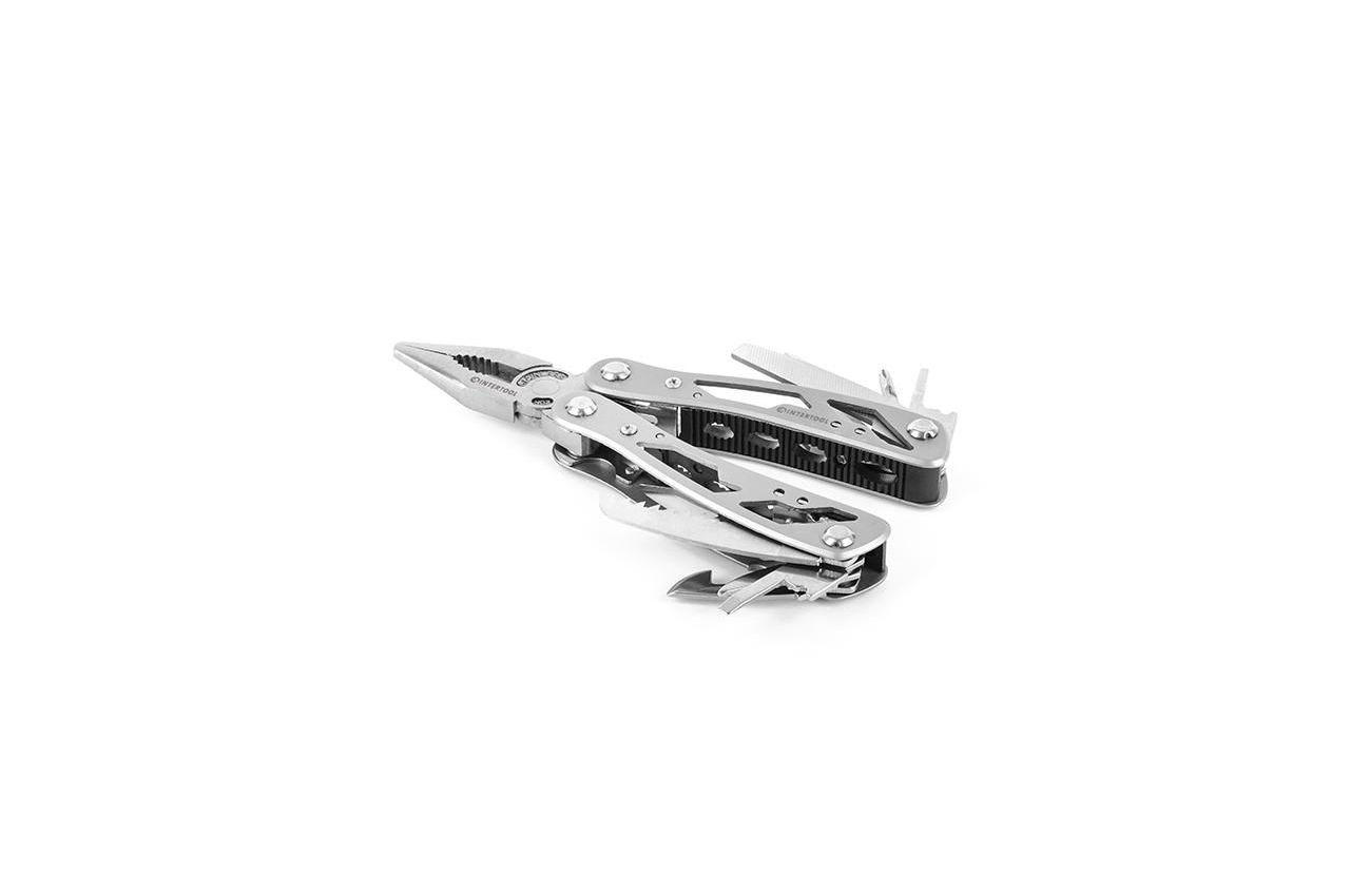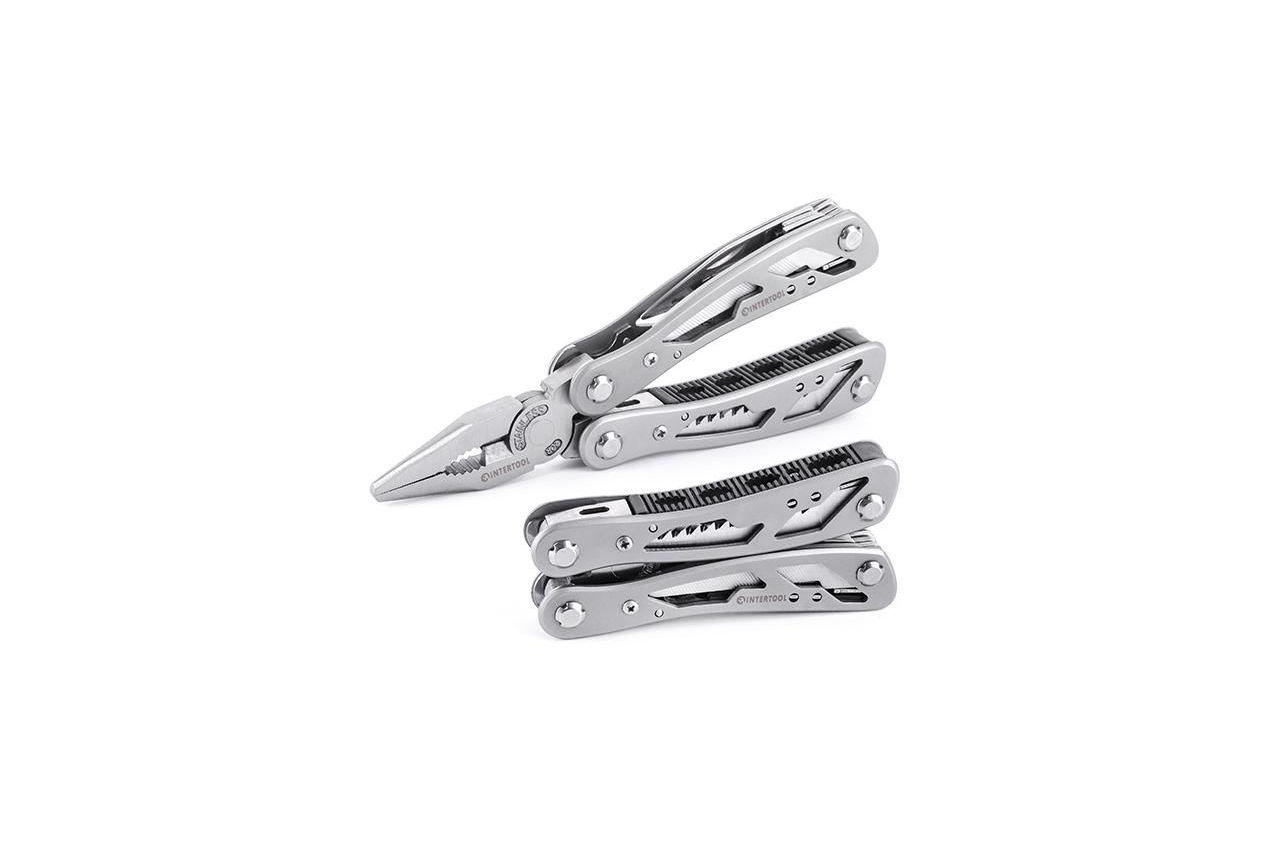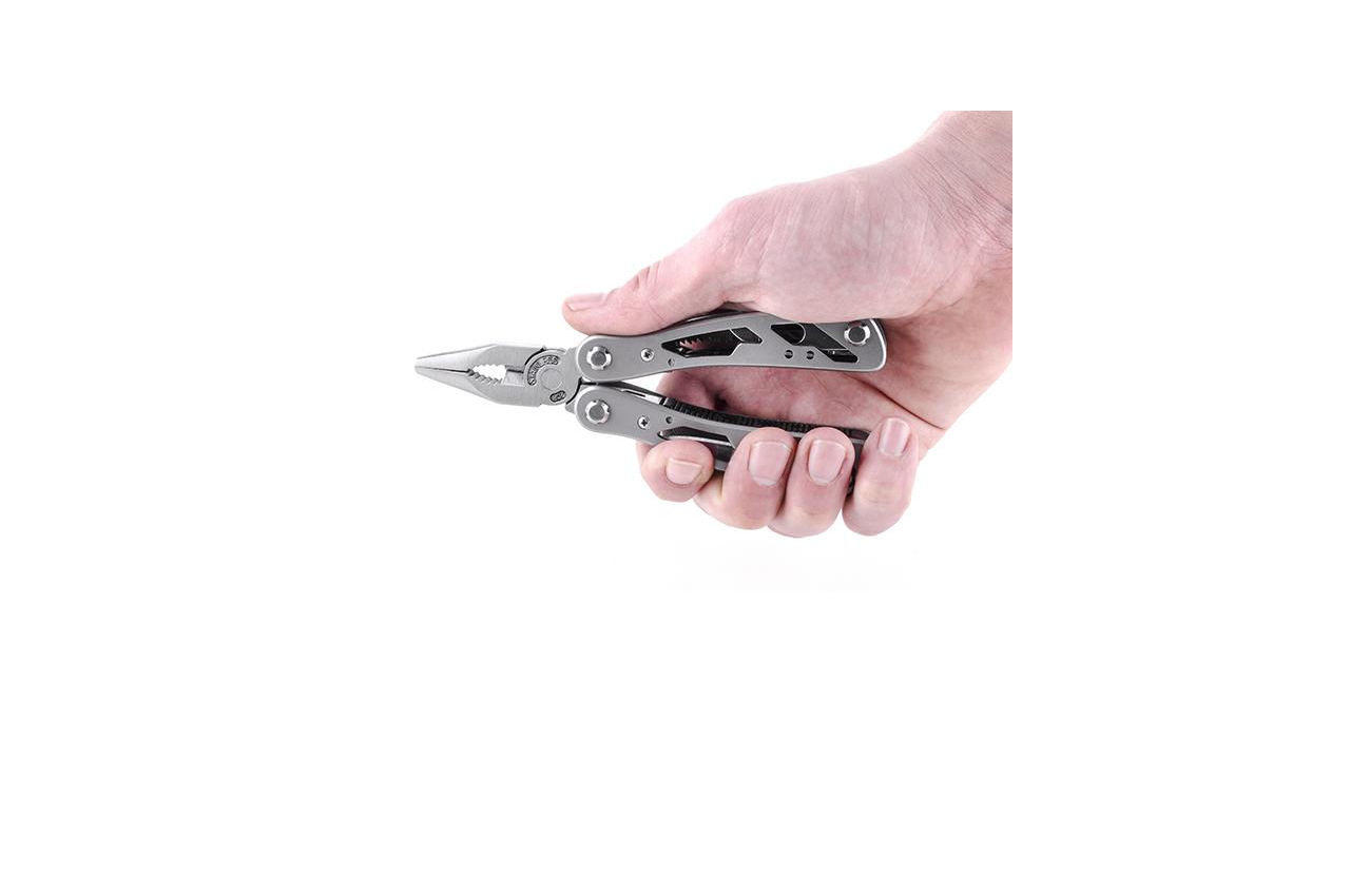 Інструмент виконаний з полірованої нержавіючої сталі. Ергономічний корпус зробить його використання максимально комфортним в будь-яких умовах, а високоміцний тканинної чохол спростить його зберігання і дасть можливість носити його просто на поясі. Мультитул містить: плоскогубці, кусачки, малий ніж, великий ніж, пила по дереву, відкривачка для пляшок, відкривачка для консервів, викрутка під шліц 3 мм, викрутка під шліц 6 мм, викрутка під шліц 8 мм, викрутка хрестова PH1 і напилок. Кількість функцій: 12; Довжина в складеному вигляді: 105 мм; Матеріал клинка: нержавіюча сталь 2Cr; Довжина леза ножа: 60 мм; Товщина рукоятки: 17 мм; Тип замка: Slip joint; Інструменти: плоскогубці; <br> кусачки; <br> ніж малий; <br> ніж великий; <br> пила по дереву; <br> відкривачка для пляшок; <br> відкривачка для консервів; <br> викрутка шлицевая SL 3, 6, 8 мм; <br> викрутка хрестова «Phillips» PH1; <br> напилок двосторонній; Загальна довжина: 165 мм; Матеріал рукоятки: нержавіюча сталь скелетного типу