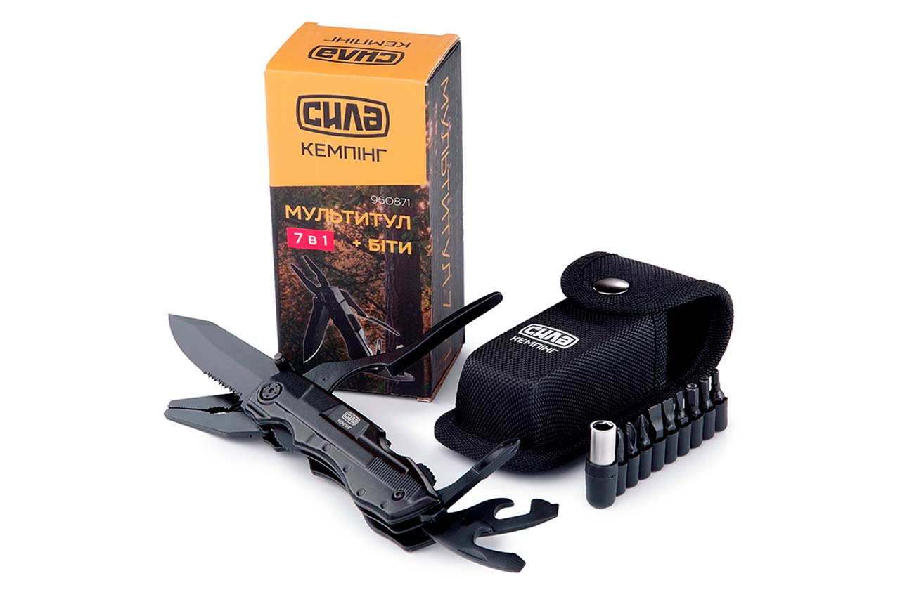 Мультинструмент Сила 7-в-1 – багатофункціональний інструмент, що є універсальним набором профільного інструменту, зібраний в одному компактному корпусі. Виріб виконаний з якісної сталі та практично повністю замінює цілий комплекс інструментарію, який займає мінімум місця та може стати в нагоді для проведення різних будівельних, ремонтних чи побутових робіт в умовах обмеженого доступу до повноформатних пристроїв. Мультитул складається з багатьох елементів, серед яких плоскогубці, ножик, відкривачка, викрутка, набір біт та ще безліч інших, незамінних у роботі та відпочинку аксесуарів.